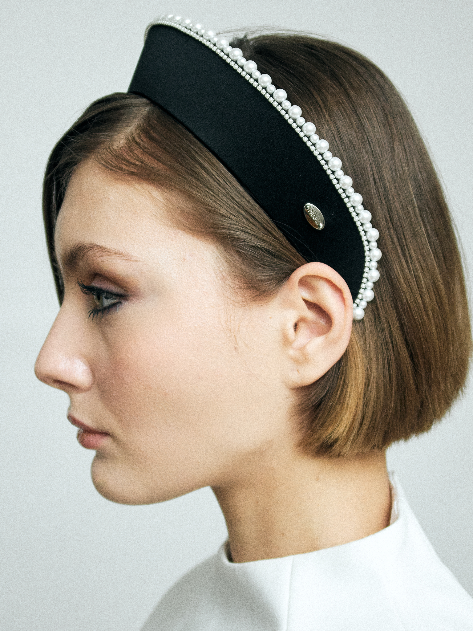Кокошник XS из черного шелка с жемчугом