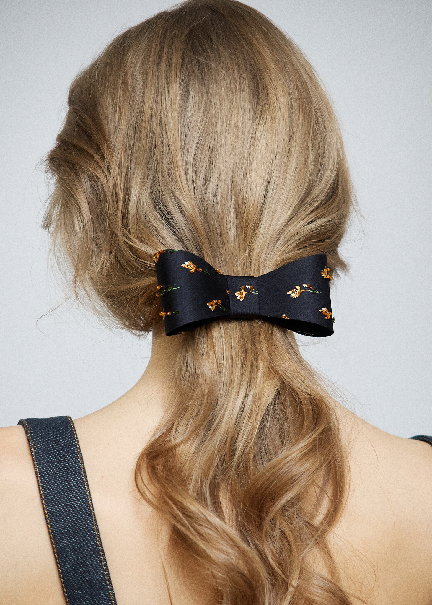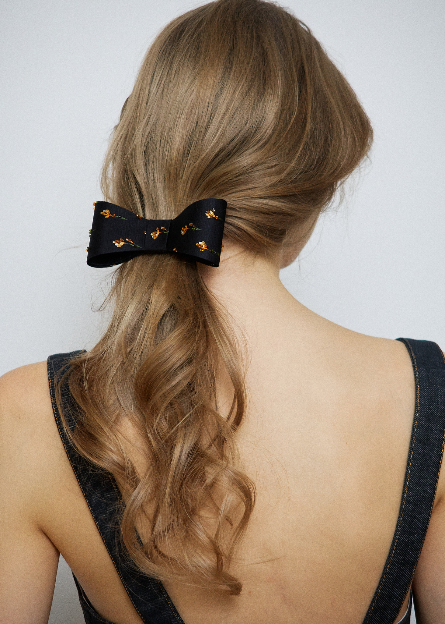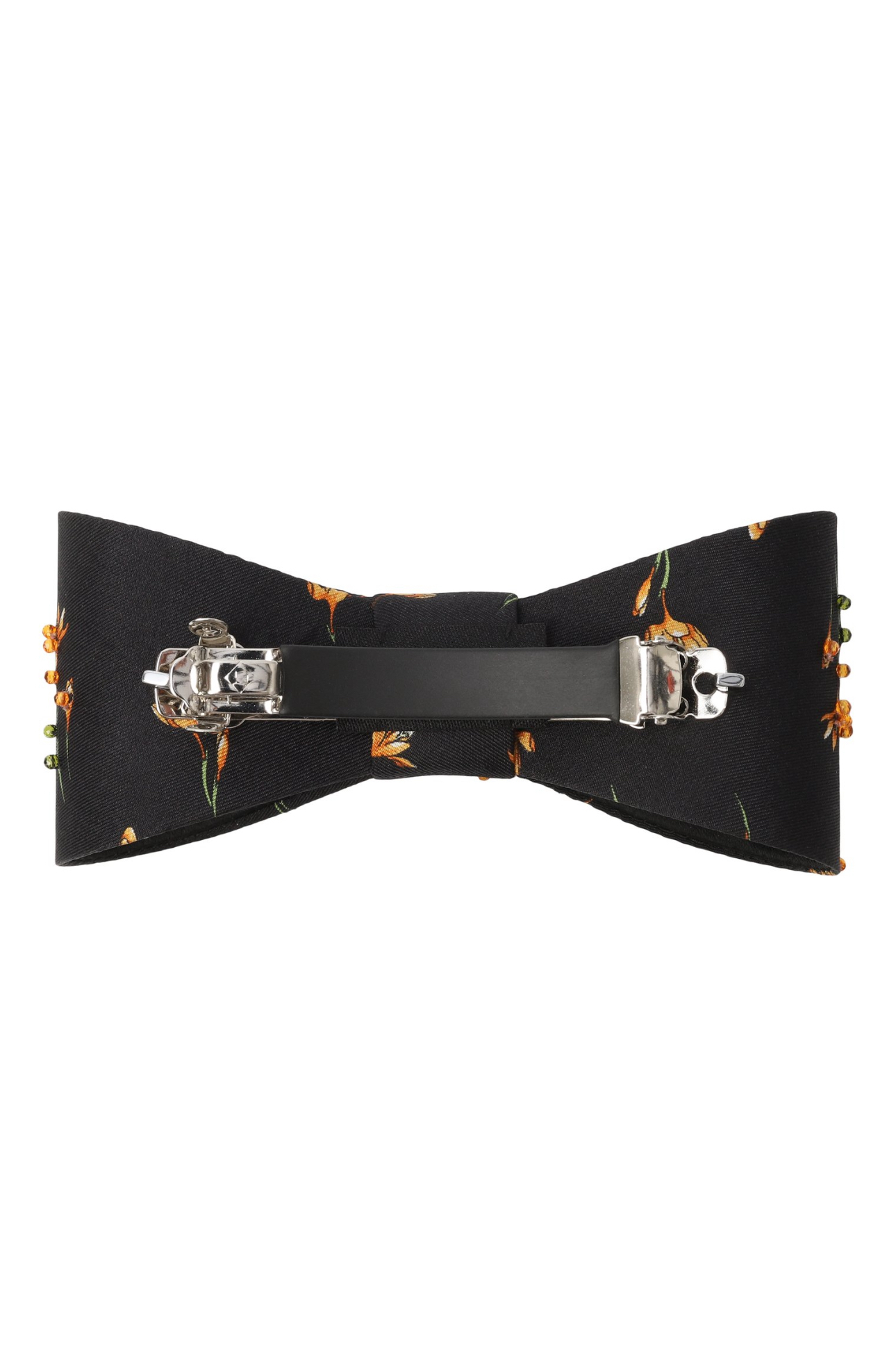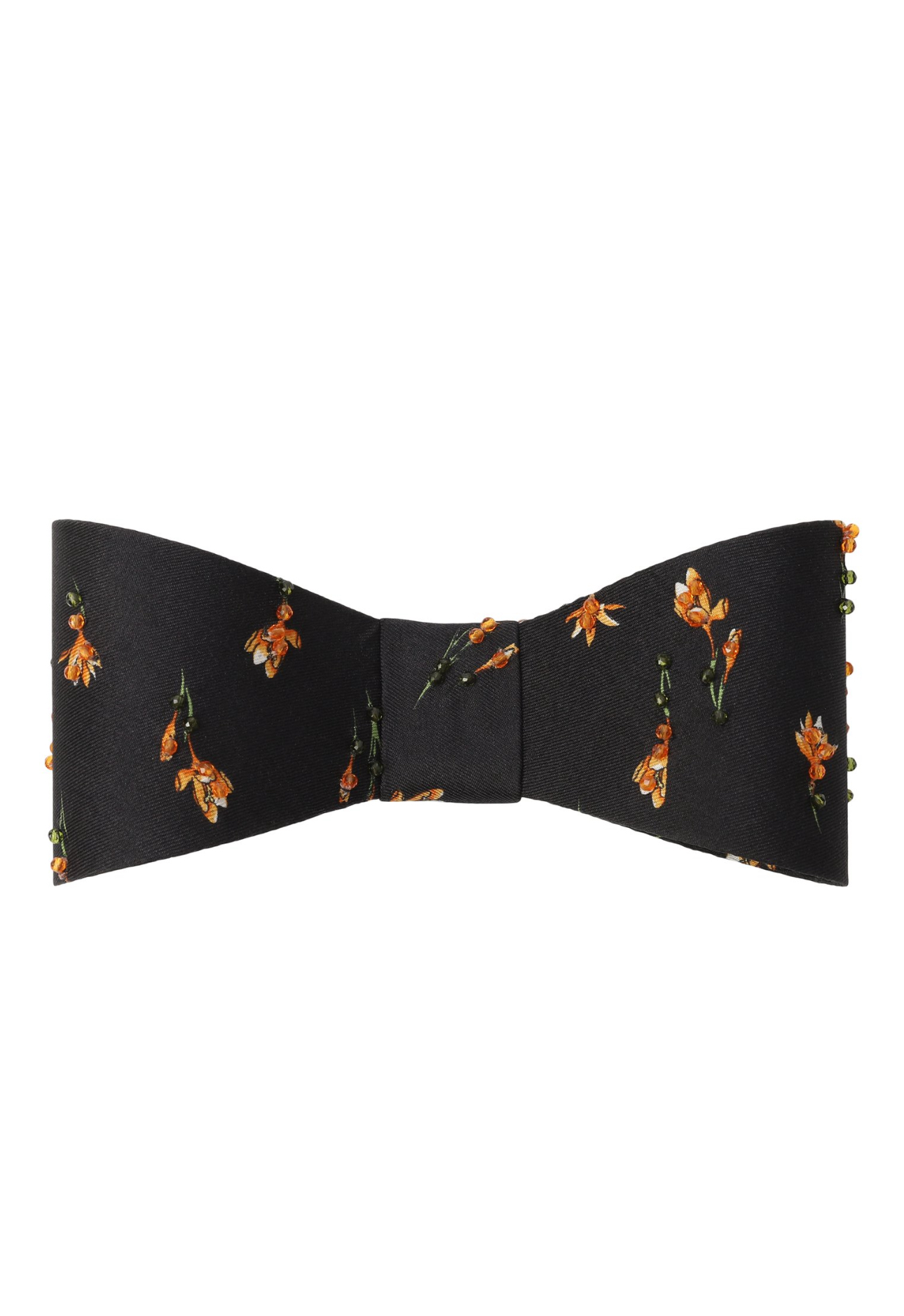 Бант-бабочка из черного натурального шелка с маленькими, аккуратными цветами расшитыми стеклянными бусинами вручную нашими мастерами.
