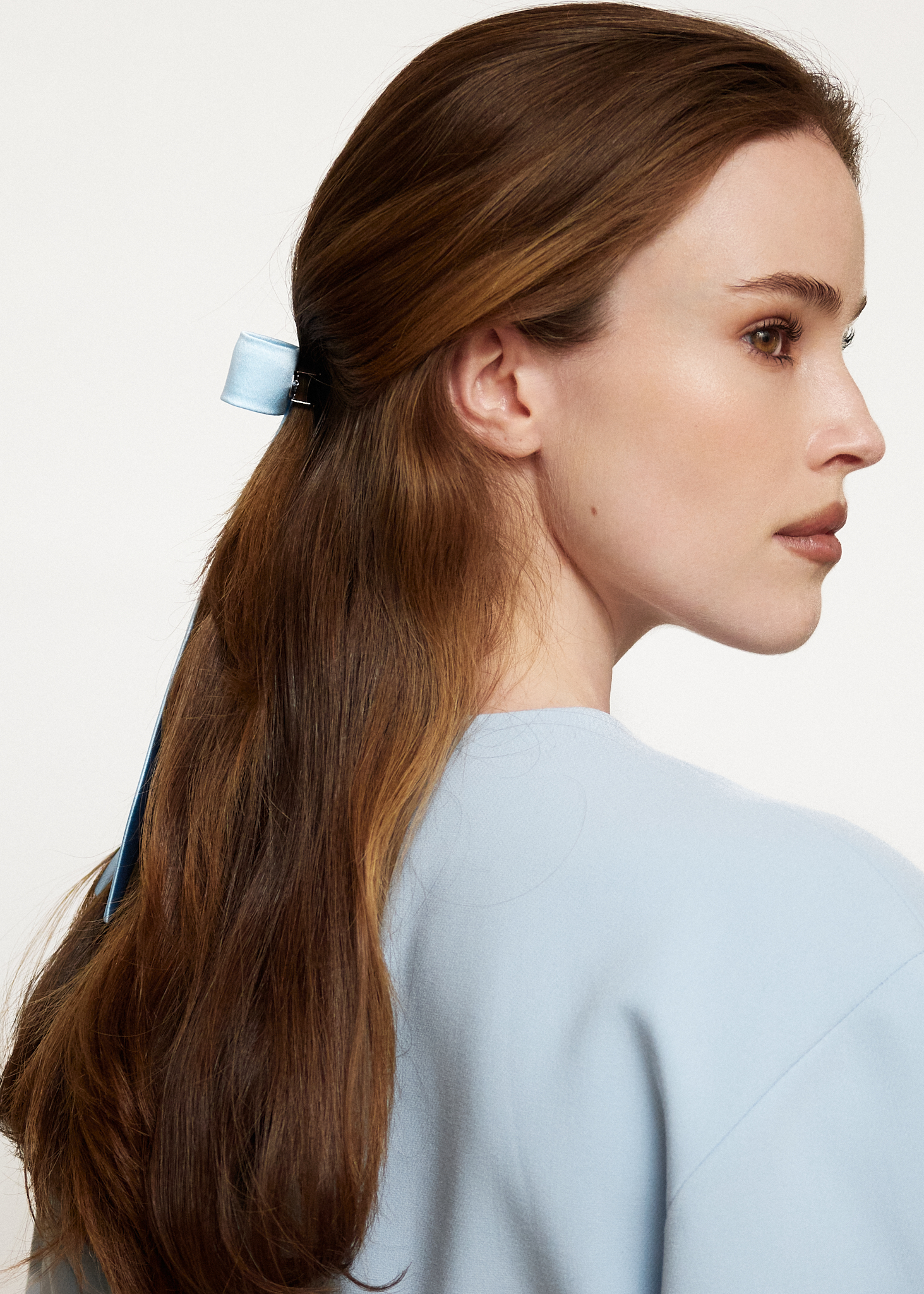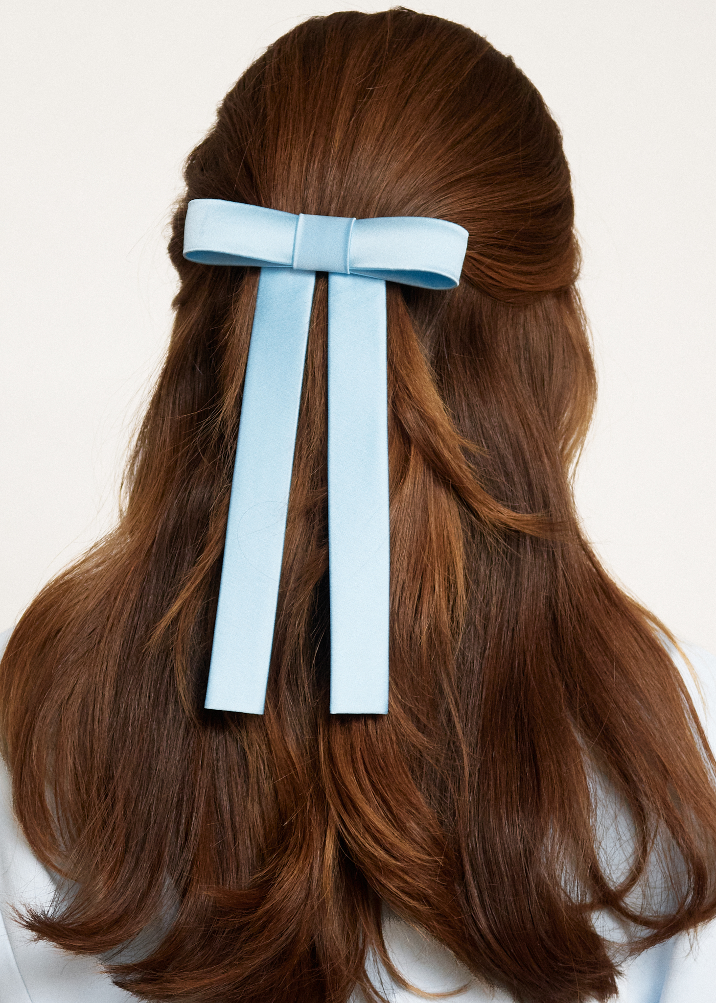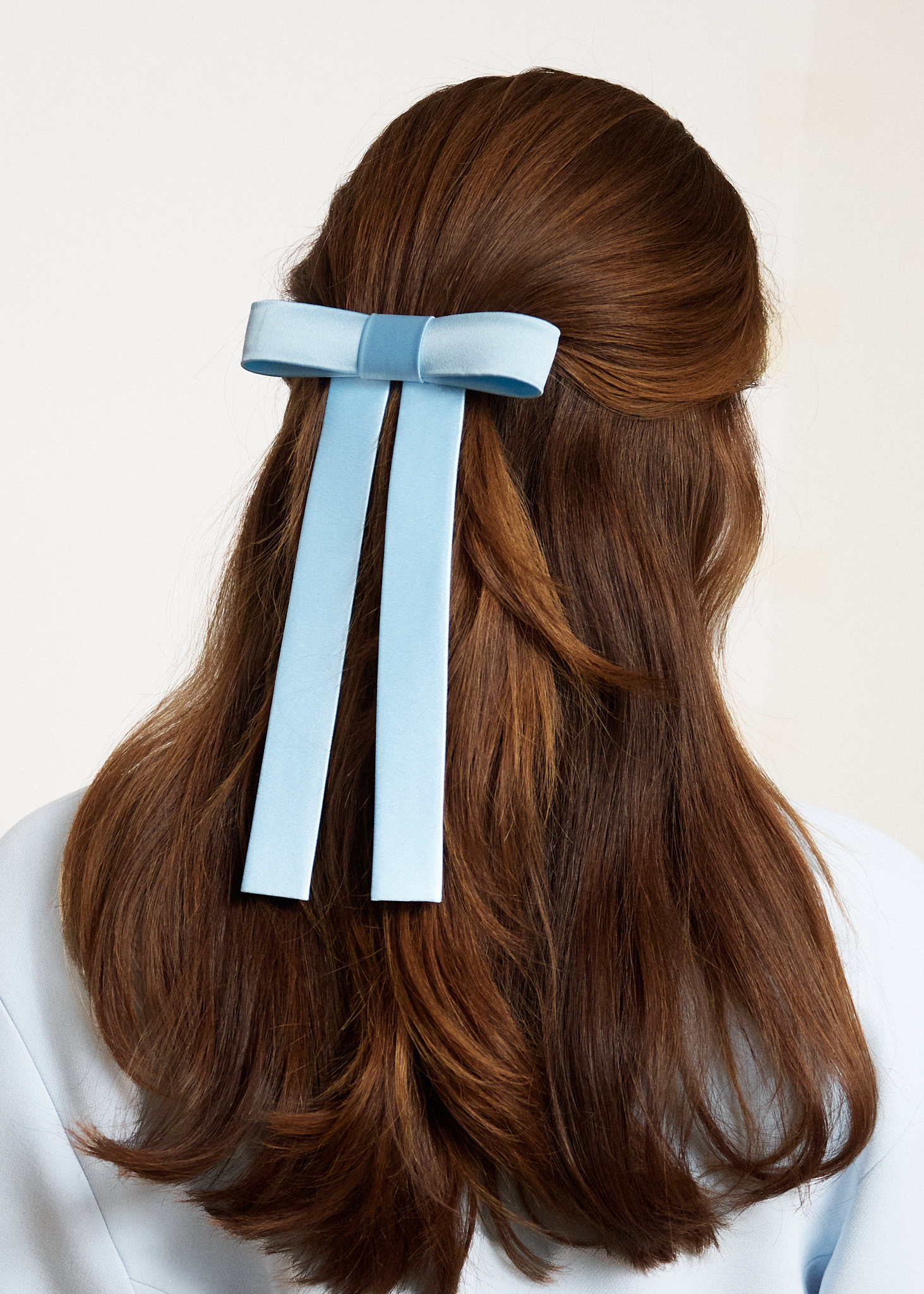 Бант ручной работы из голубого шелкового атласа "Мэри".