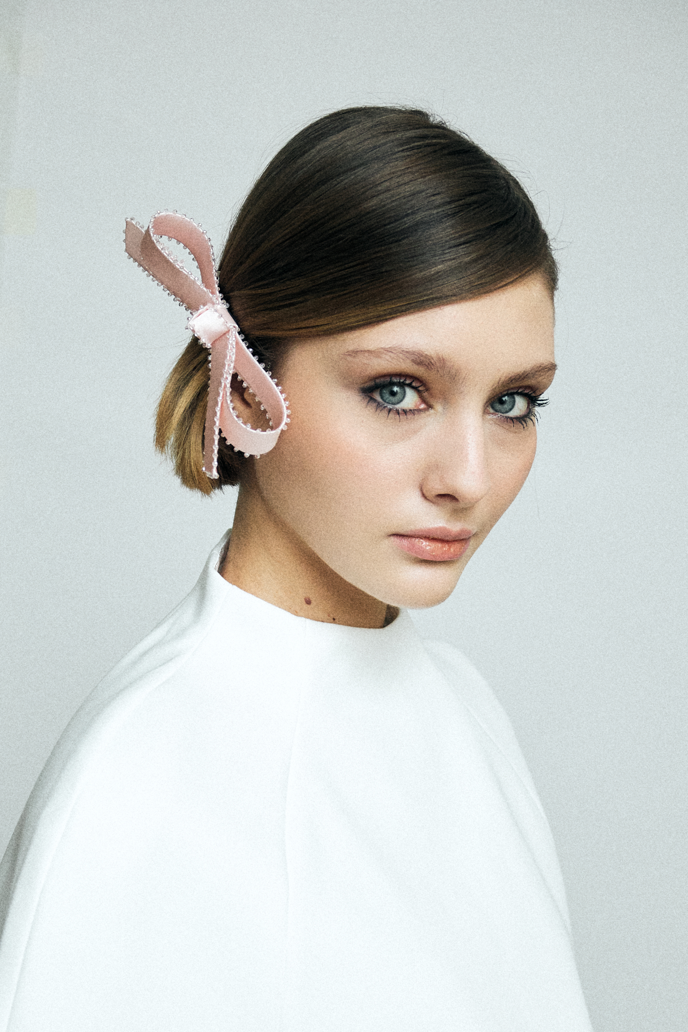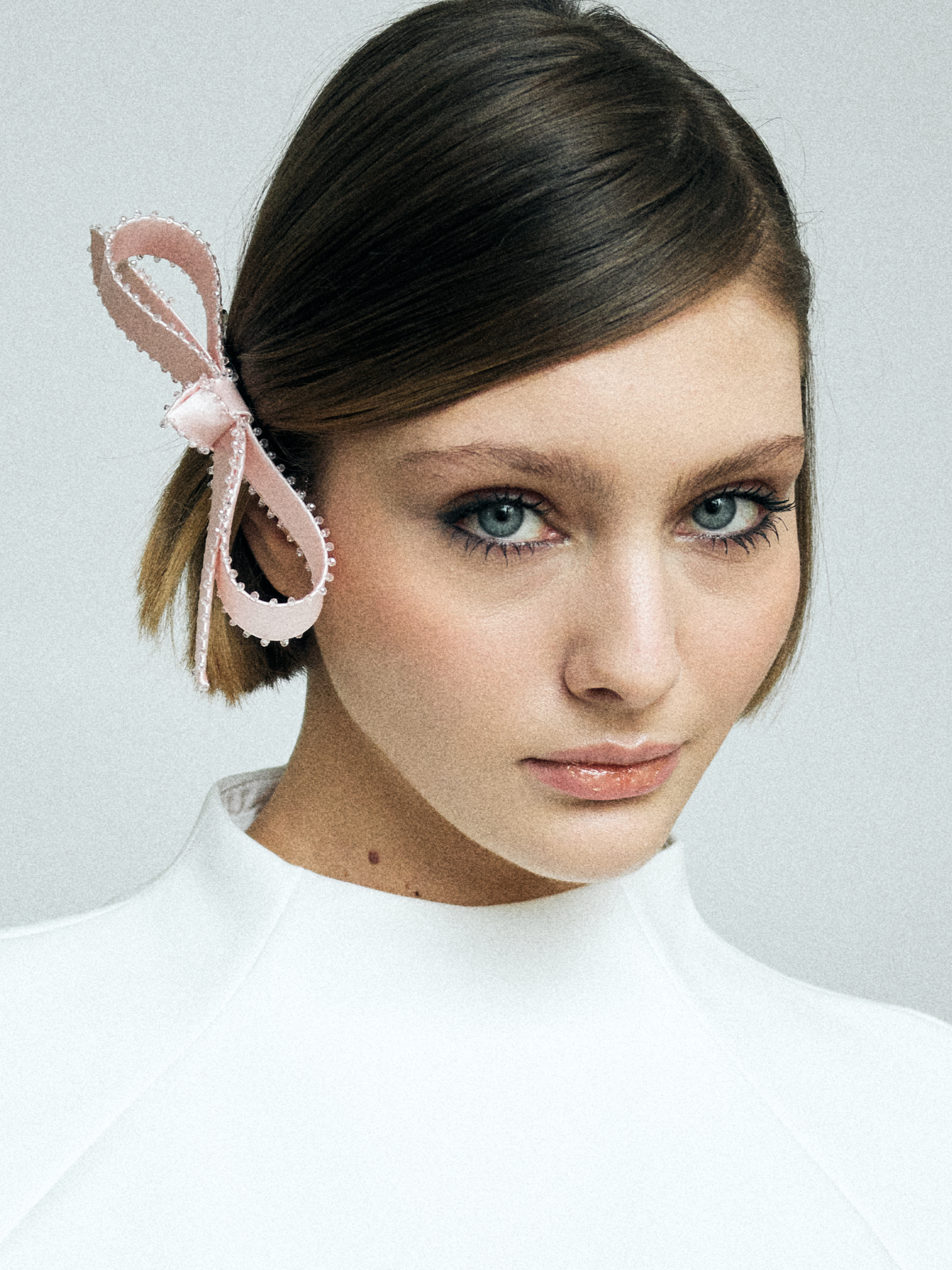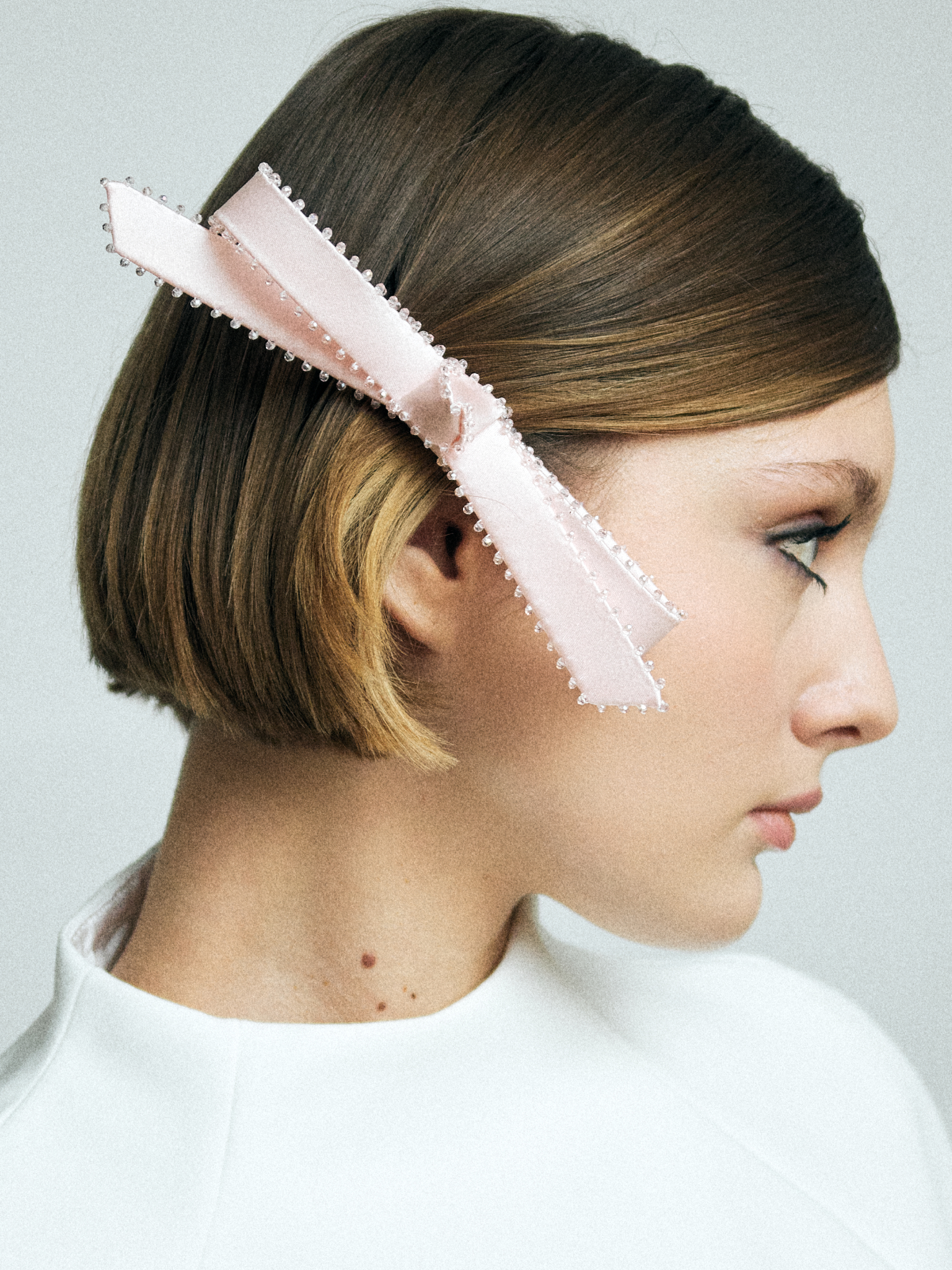Миниатюрный бант "Стрекоза" из розового шелкового атласа, способный придать прическе необычный вид.