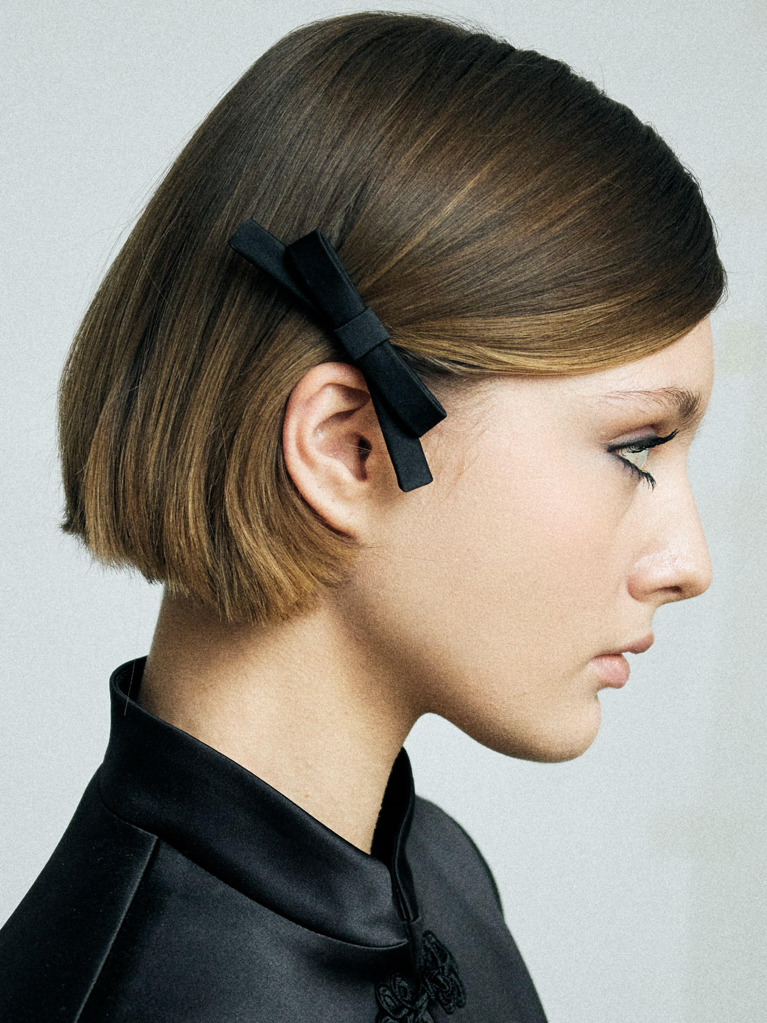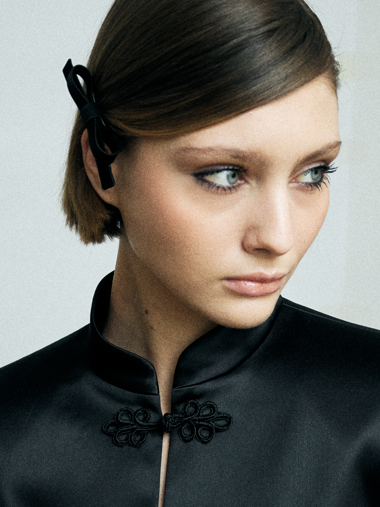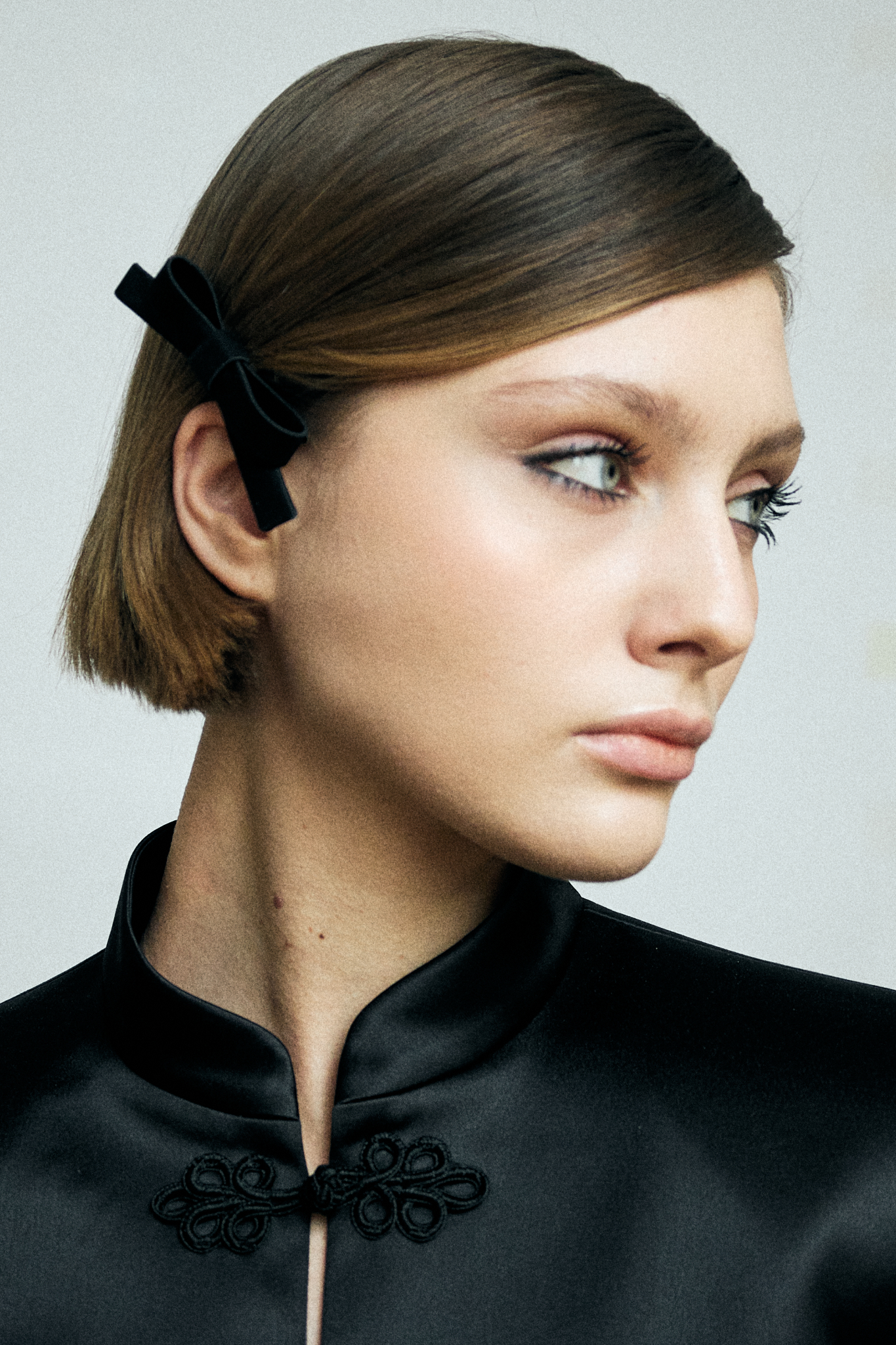 Бант стрекоза в размере XXS из атласного шелка в черном цвете.