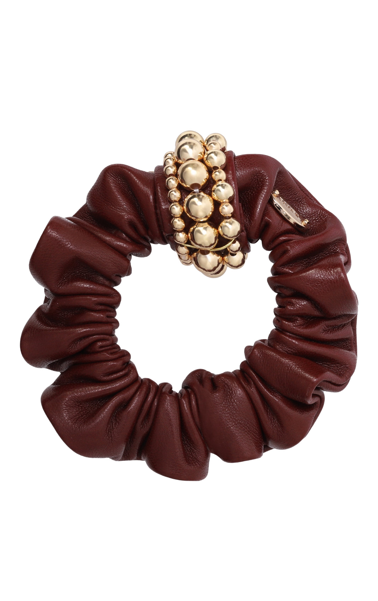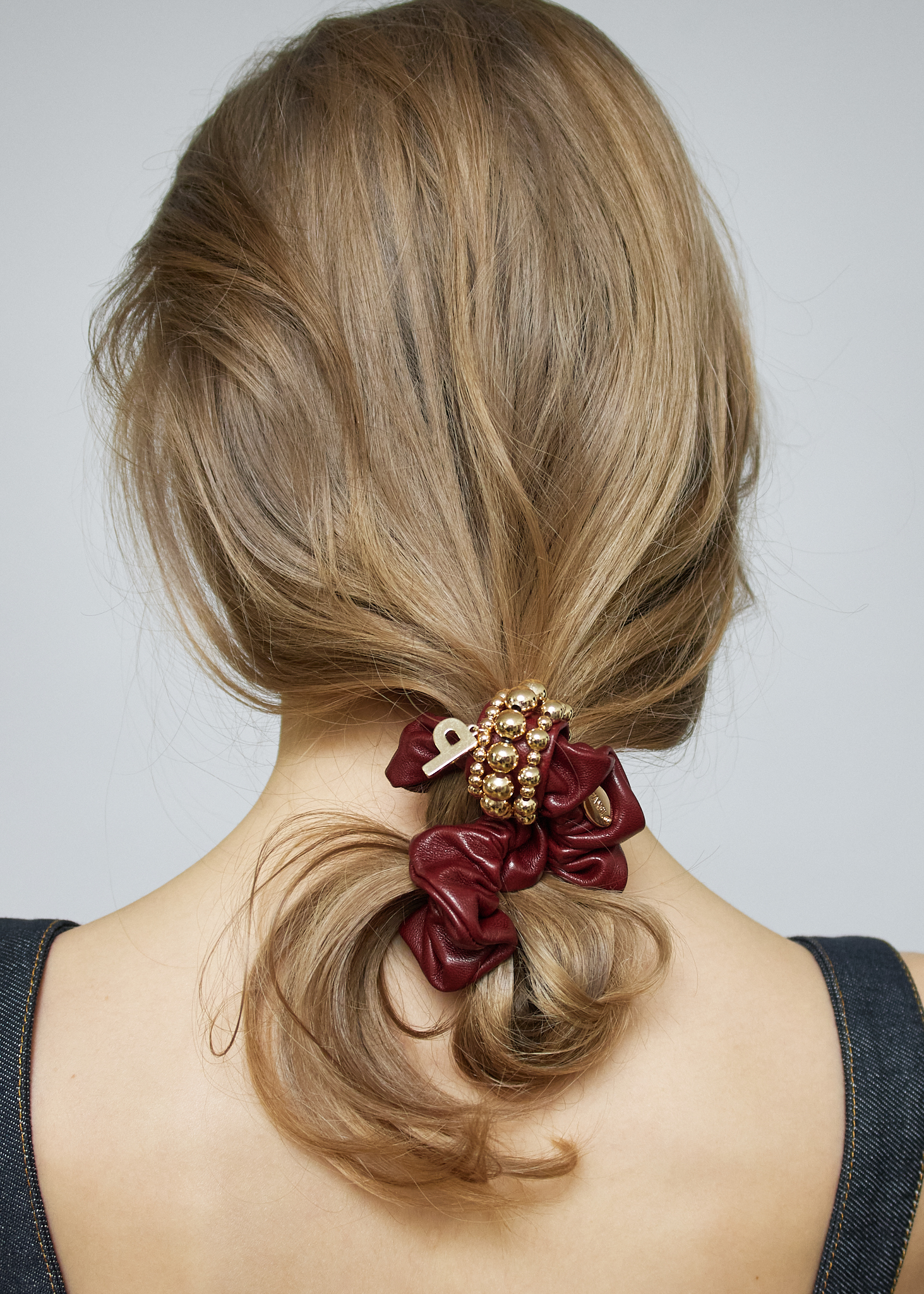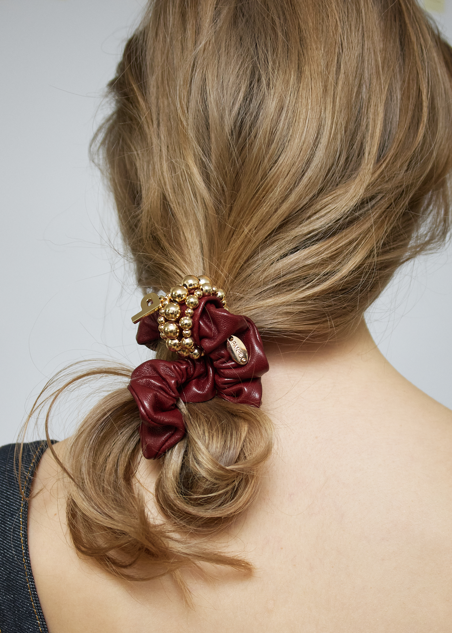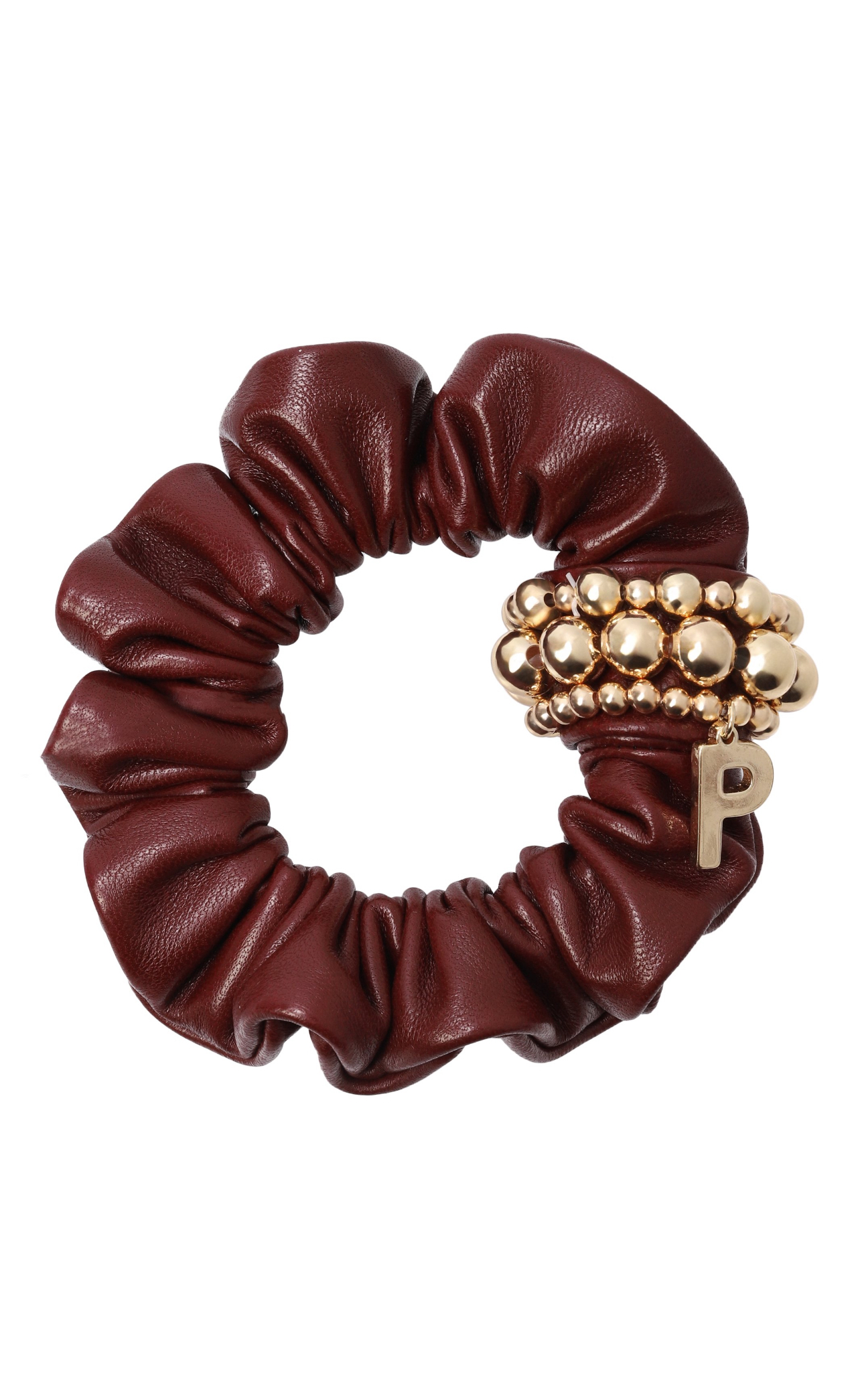 Резинка из натуральной кожи бордового цвета дополненная бусинами и логотипом бренда, резинка выполнена вручную нашими мастерами.