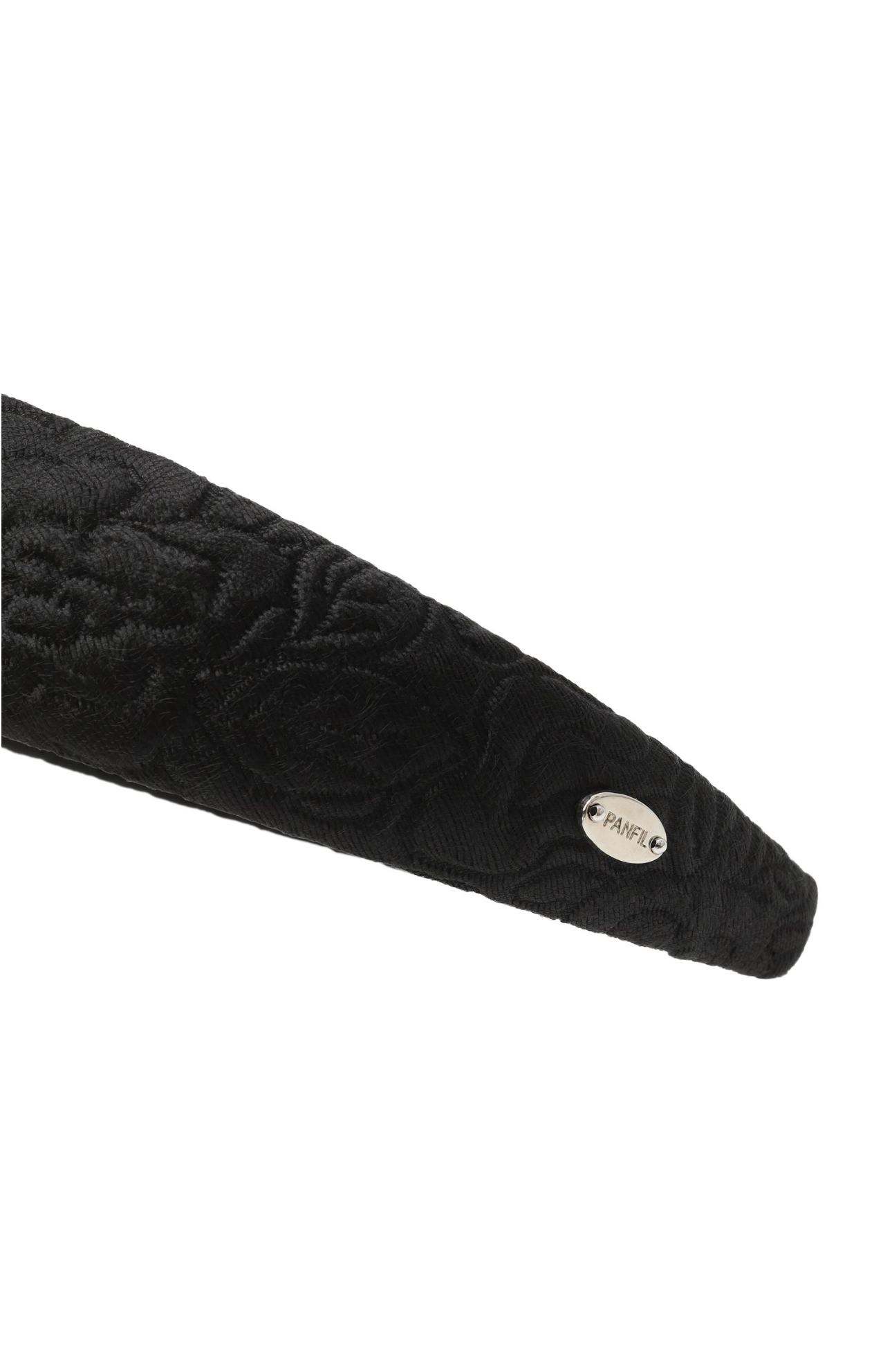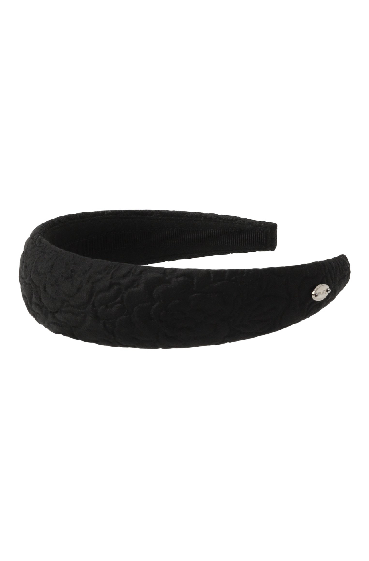 Объемный ободок из черного жаккарда с узором.
