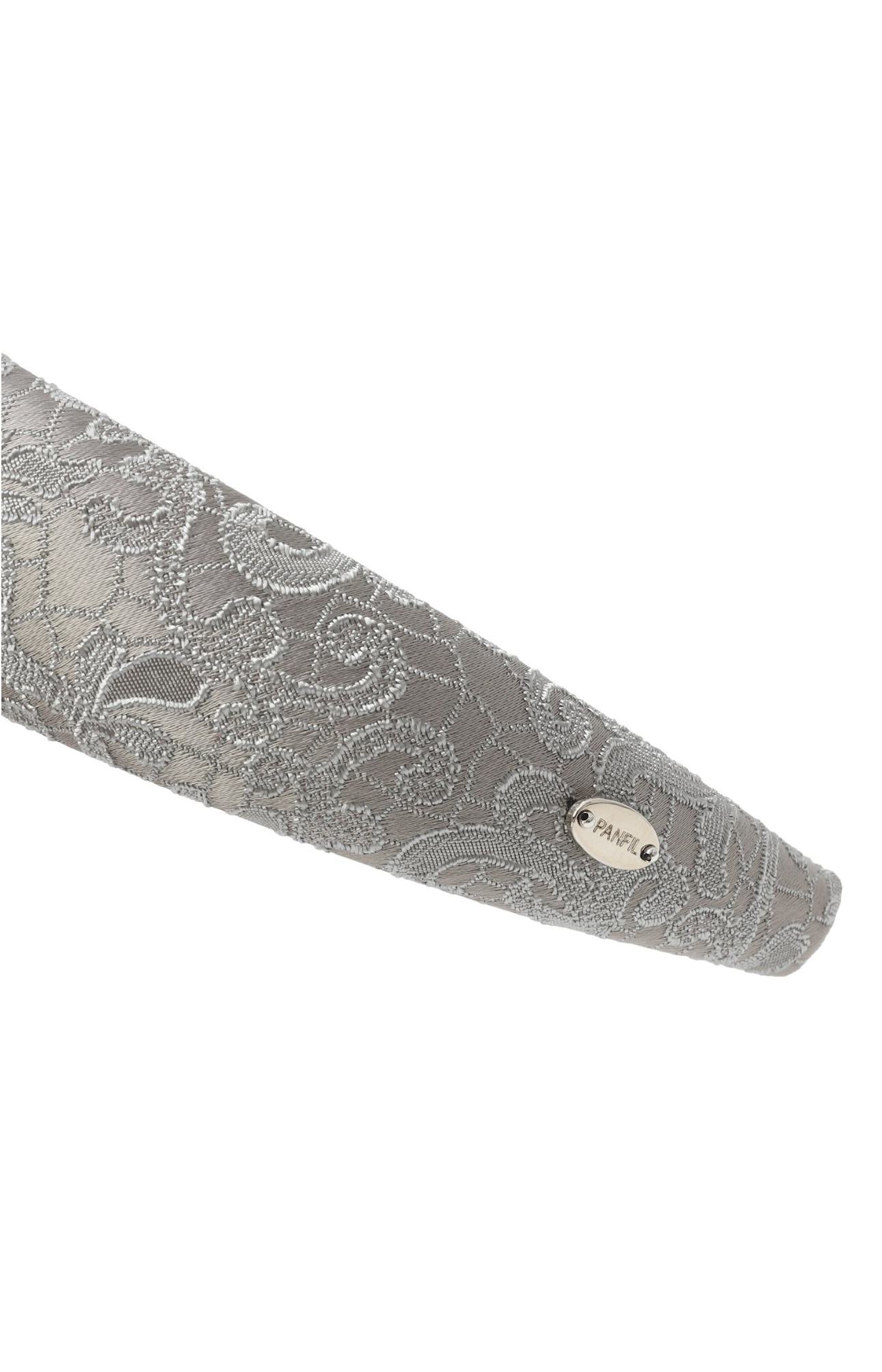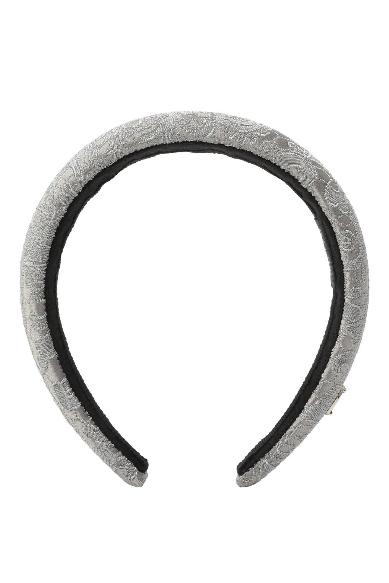 Объемный ободок из серебристого жаккарда с узором.