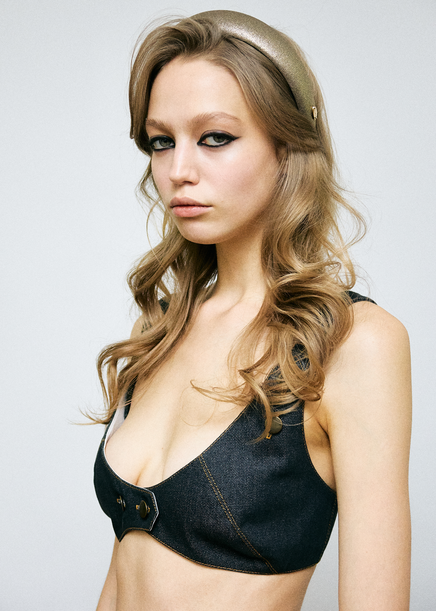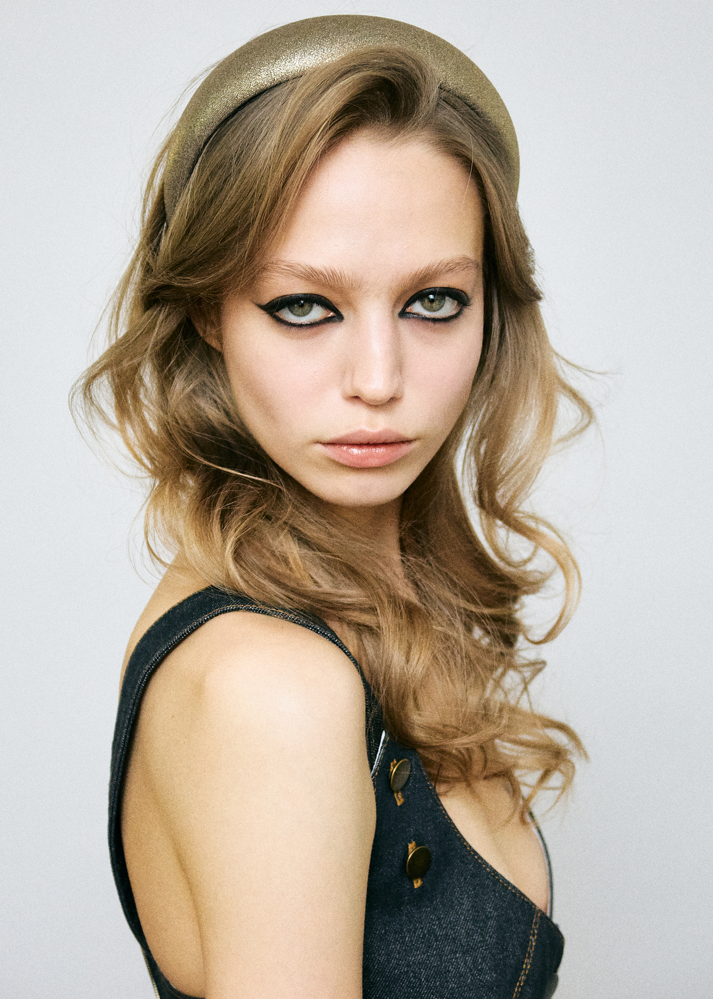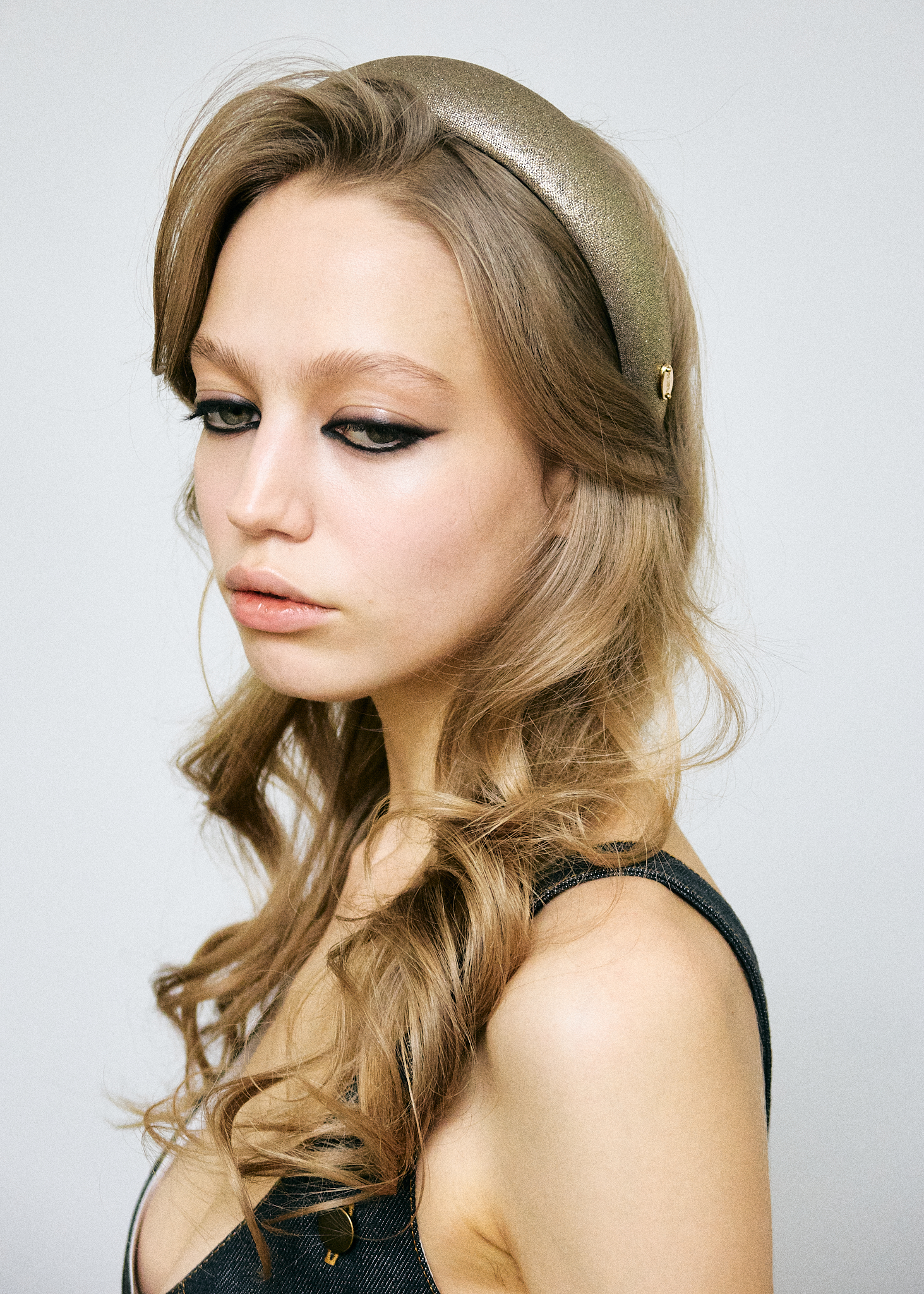 Объемный ободок из 100% шерсти с добавлением металлизированных золотых нитей. На внутренней стороне закреплена репсовая лента, которая не дает модели скользить по волосам. Ободок с гибкой основой комфортно садится на голове и не давит на виски.