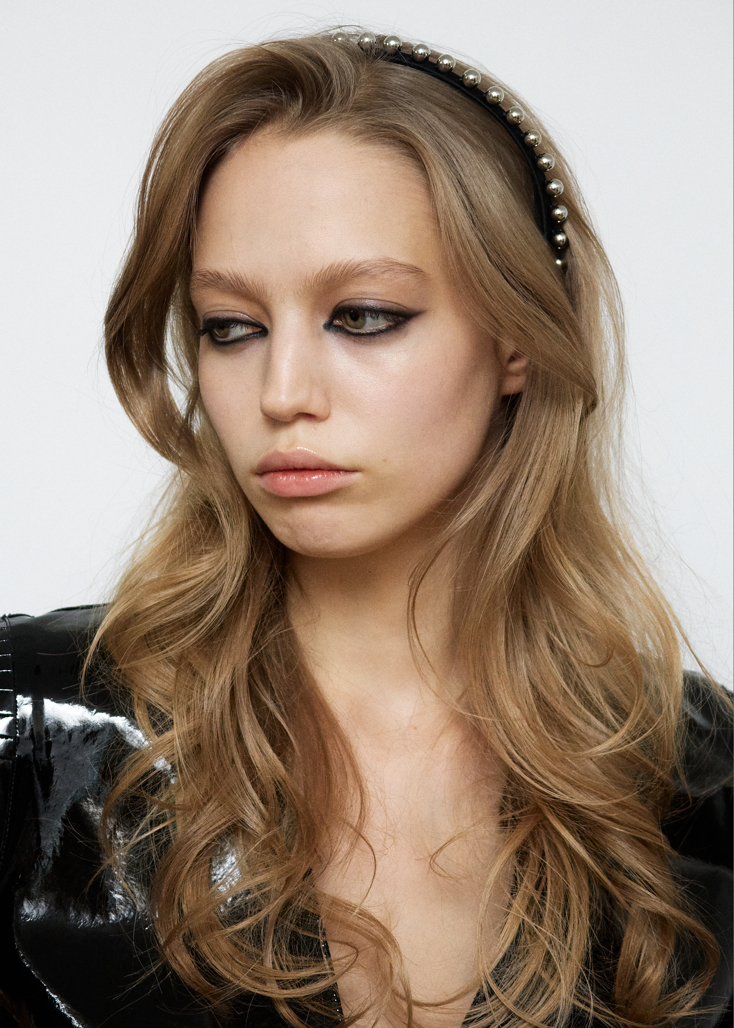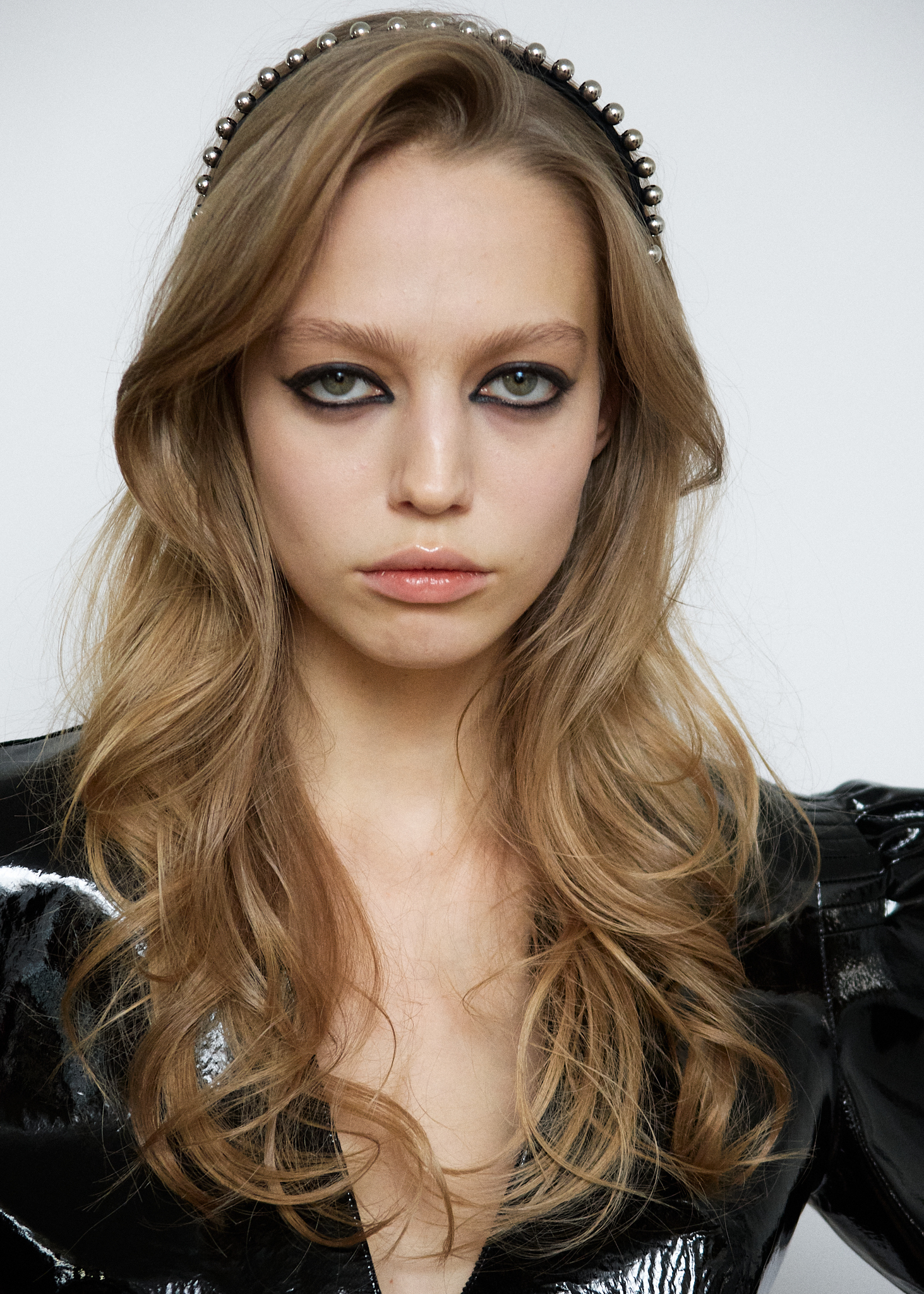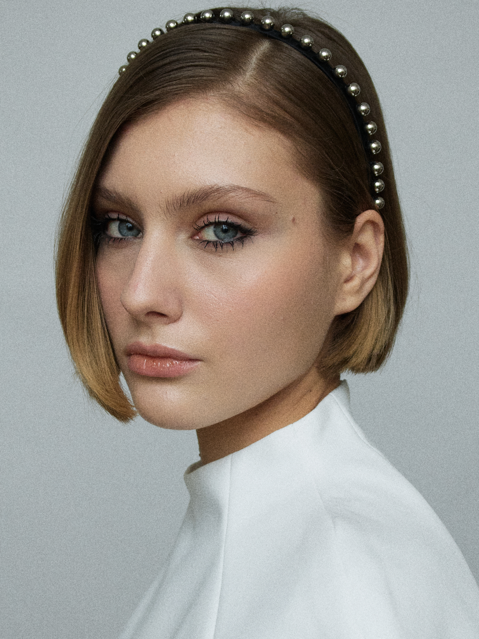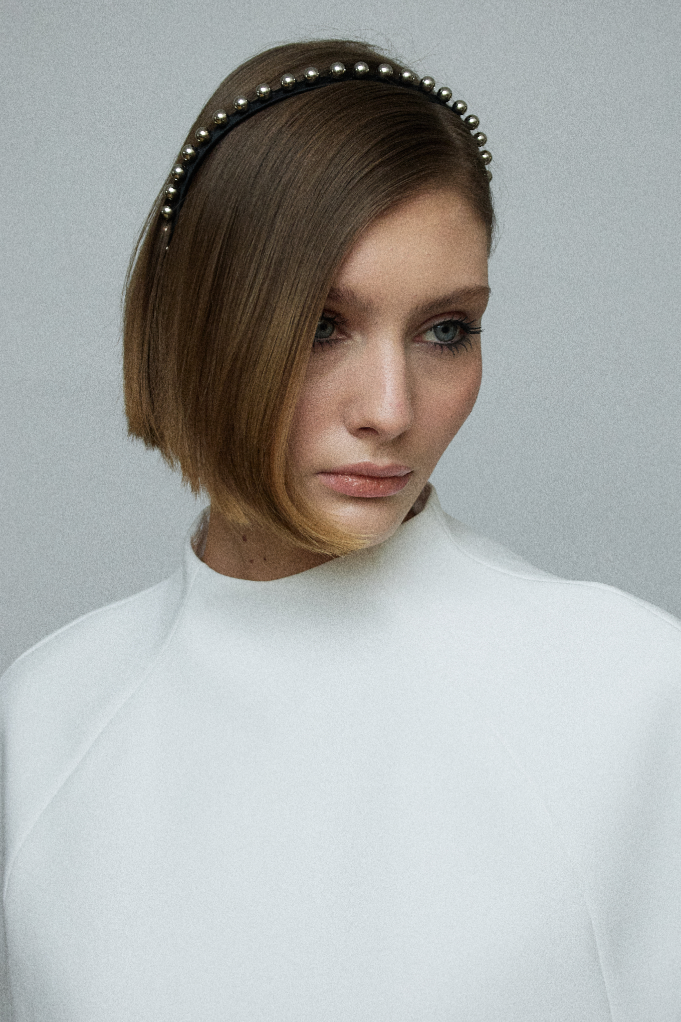 Тонкий ободок из шелкового атласа с мелкими металлическими шарами, который вручную выполнен нашими мастерами.