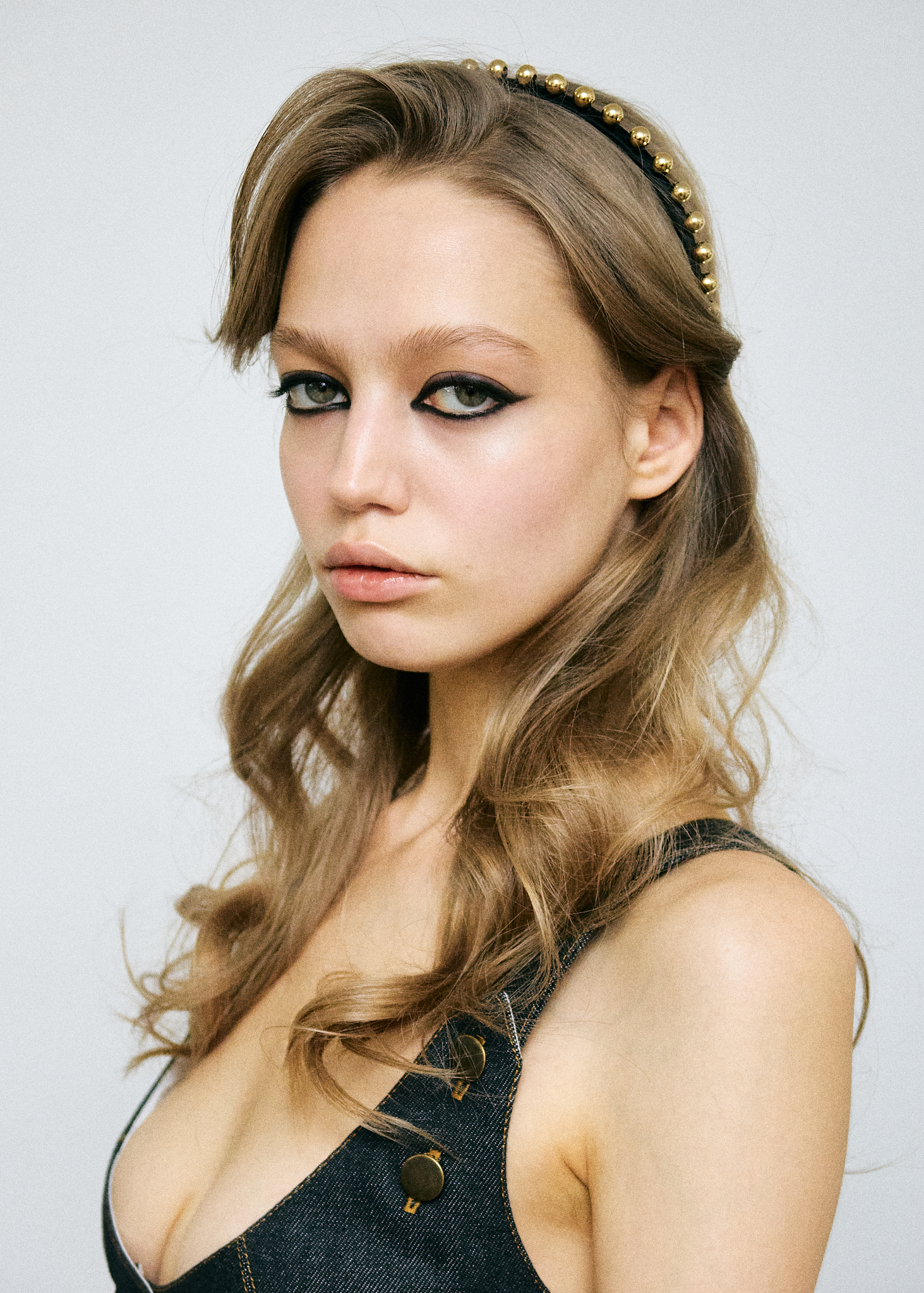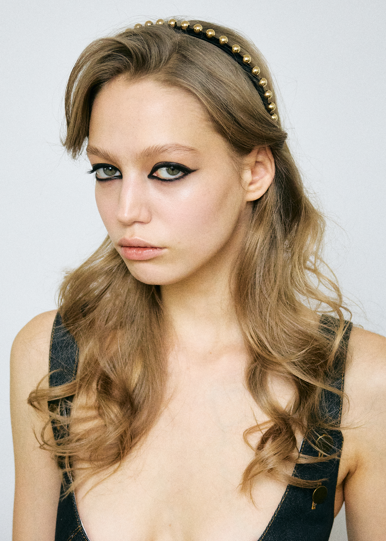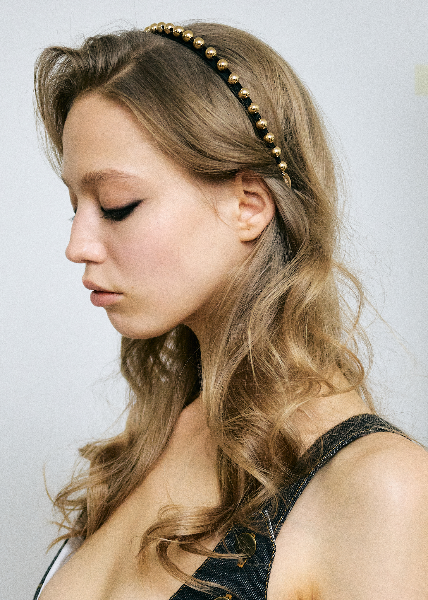 Тонкий ободок из шелкового атласа с мелкими золотыми шарами, который вручную выполнен нашими мастерами.