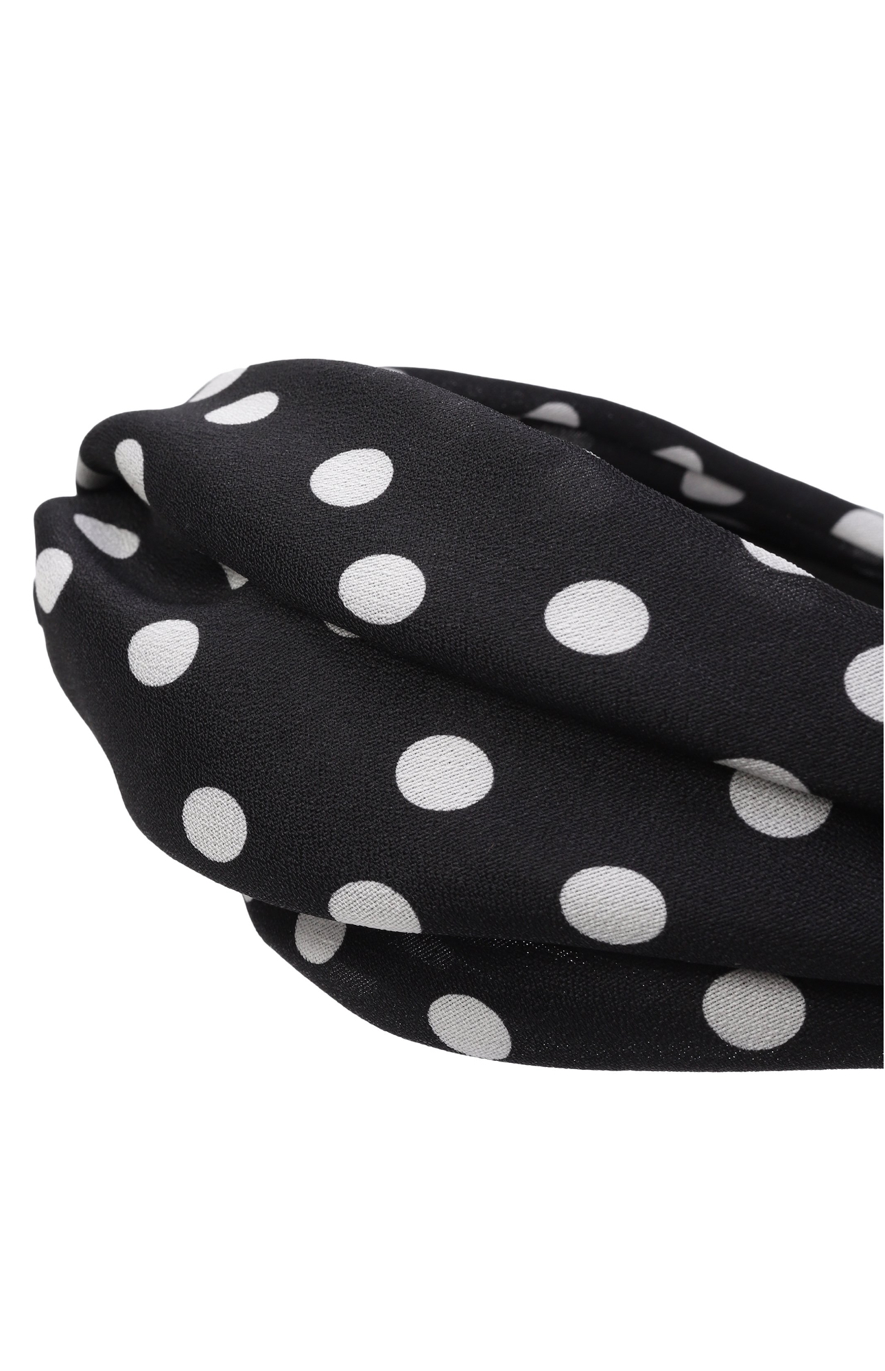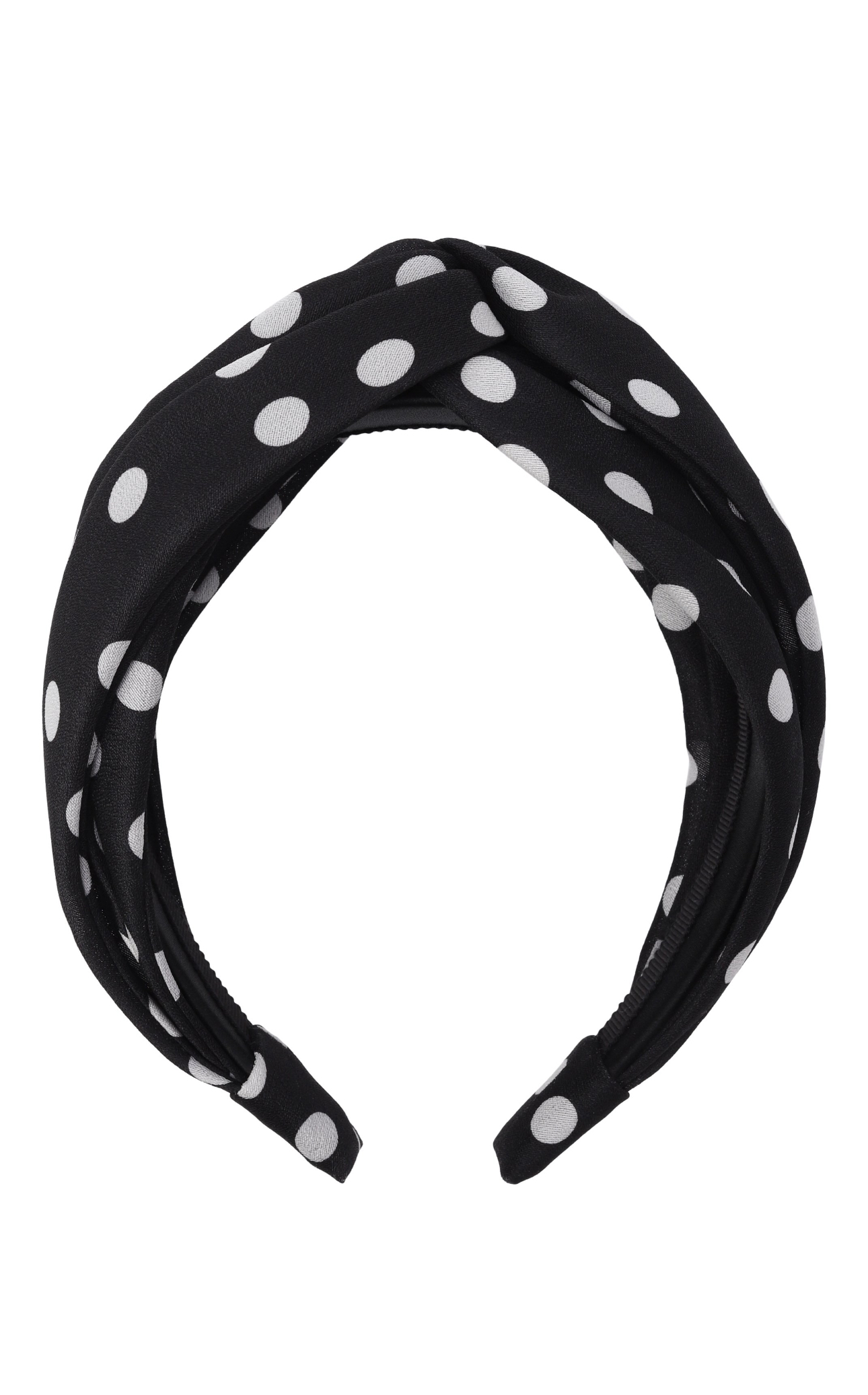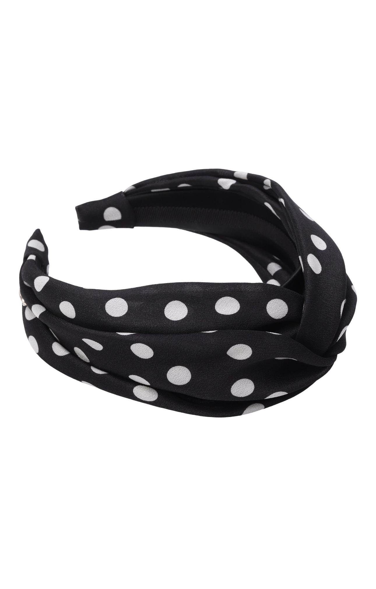 Черный ободок-узел в белый горошек из атласа, выполнен вручную нашими мастерами и изготовлен по авторским техникам бренда.