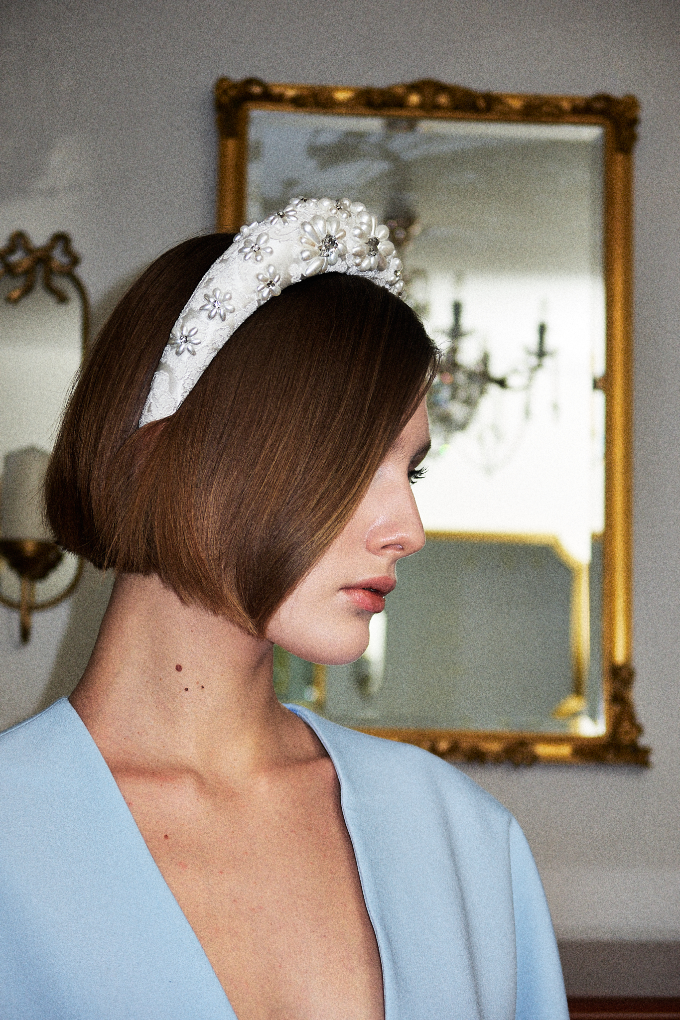 Эксклюзивный ободок — настоящее воплощение элегантности и утончённости. Каждый ободок создаётся вручную из благородного шелка и украшается жемчугом и сверкающими камнями, чтобы подчеркнуть вашу уникальность и стиль.