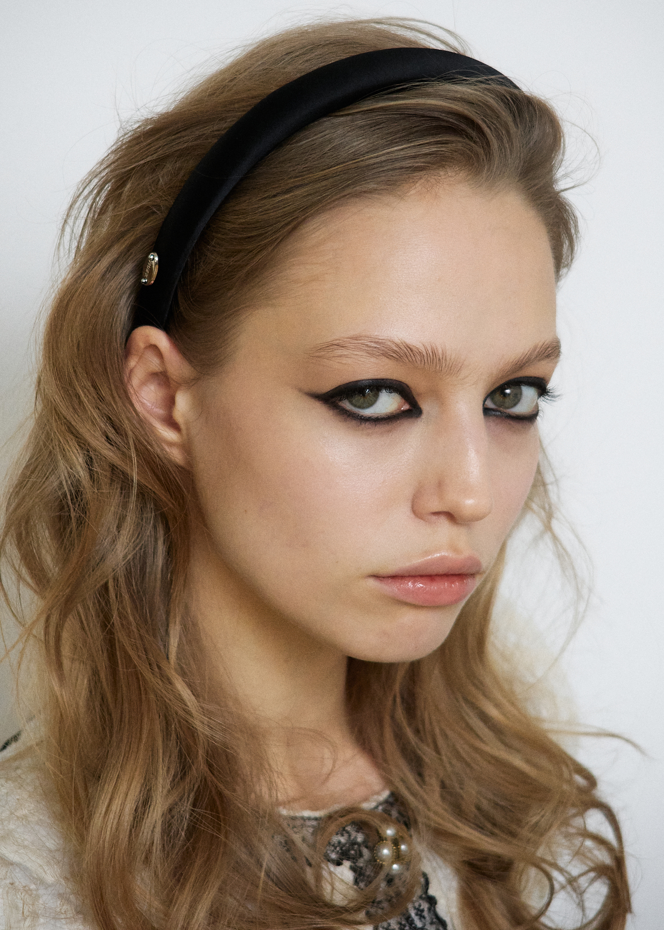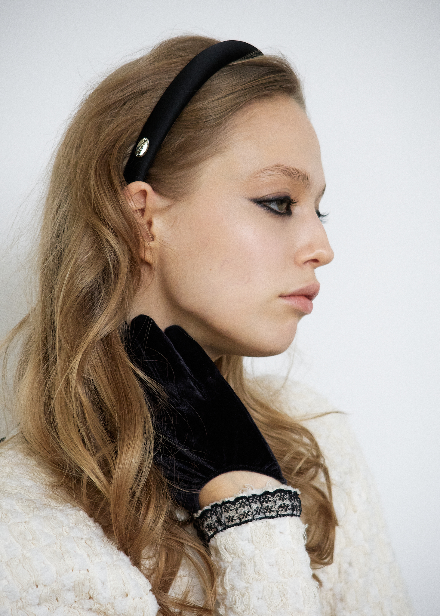 Черный ободок из черного атласа изготовлен мастерами по авторским техникам бренда.