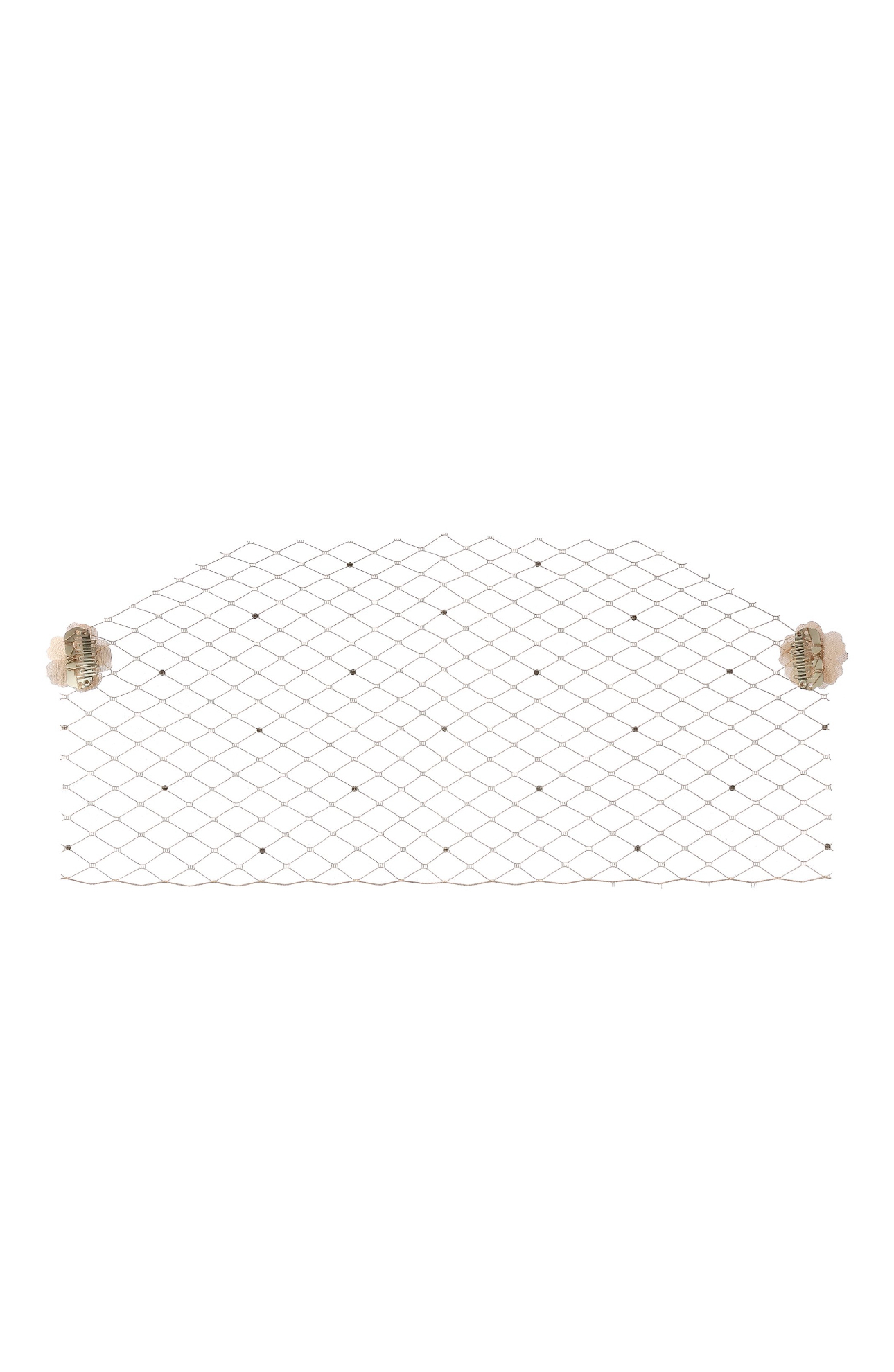 Мы создали легкое сетчатое полотно, которое крепится на заколках и украшено нежными цветами из шелка.