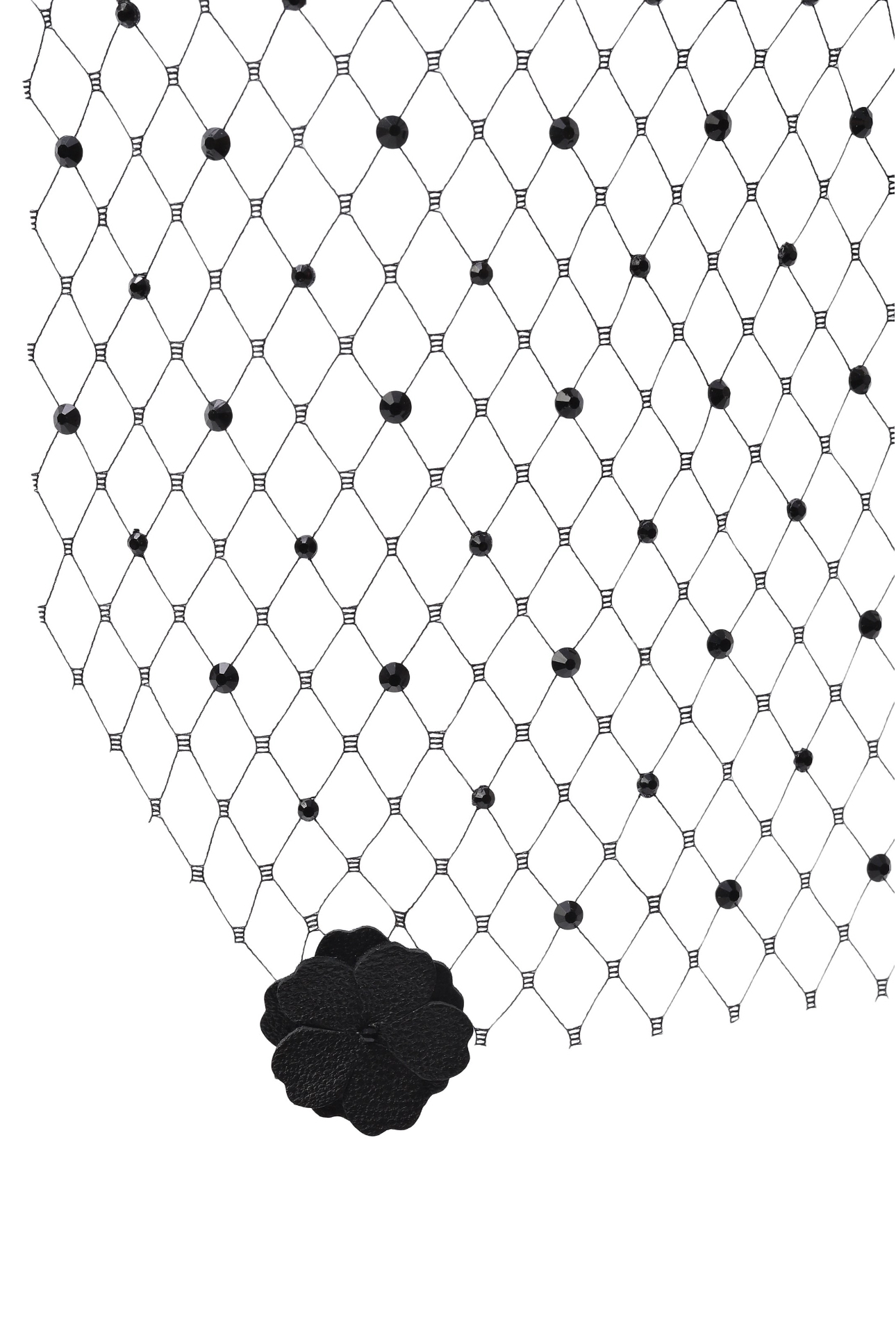 Мы создали легкое сетчатое полотно, которое крепится на заколках и украшено нежными цветами из кожи.