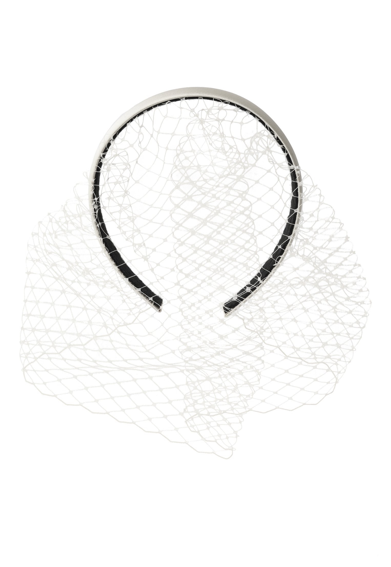 Ободок тонкий с классической вуалью в молочно-сером цвете.