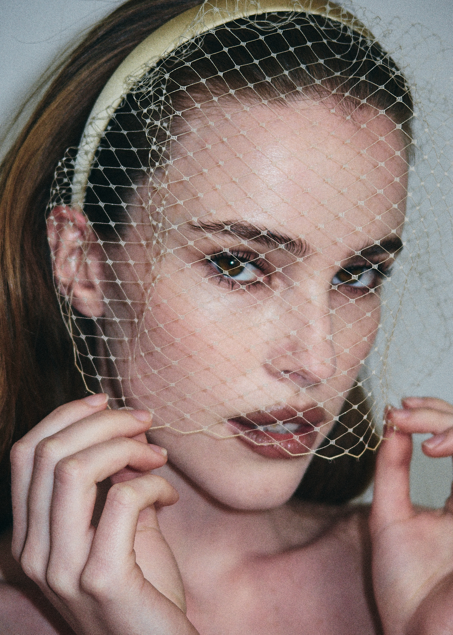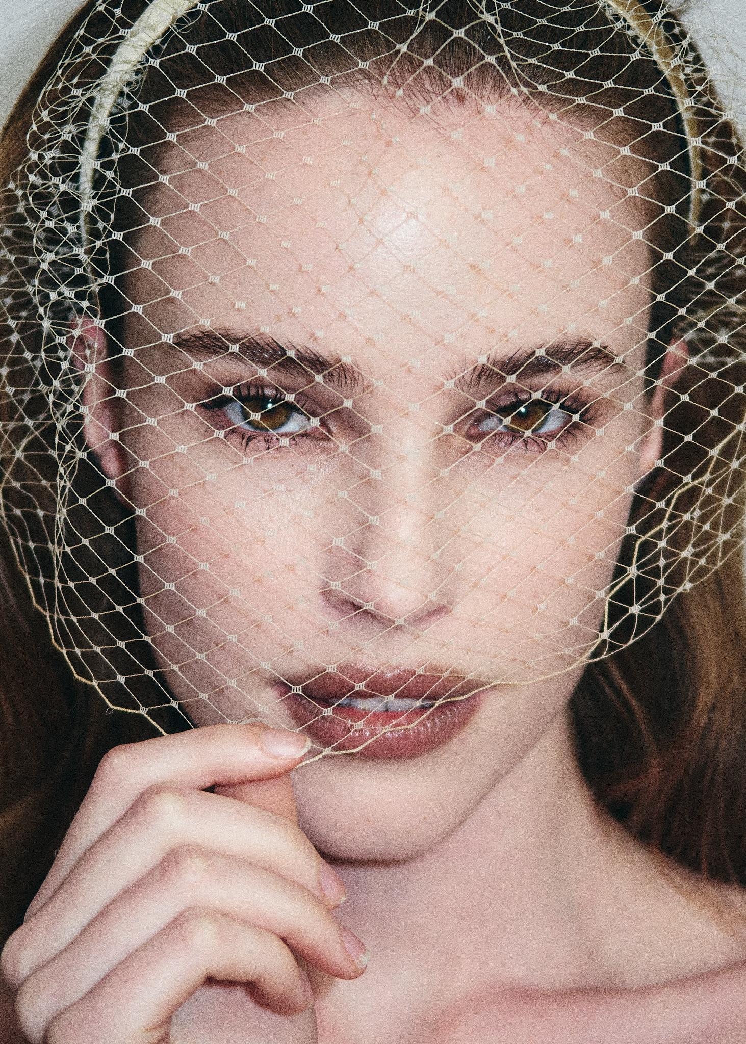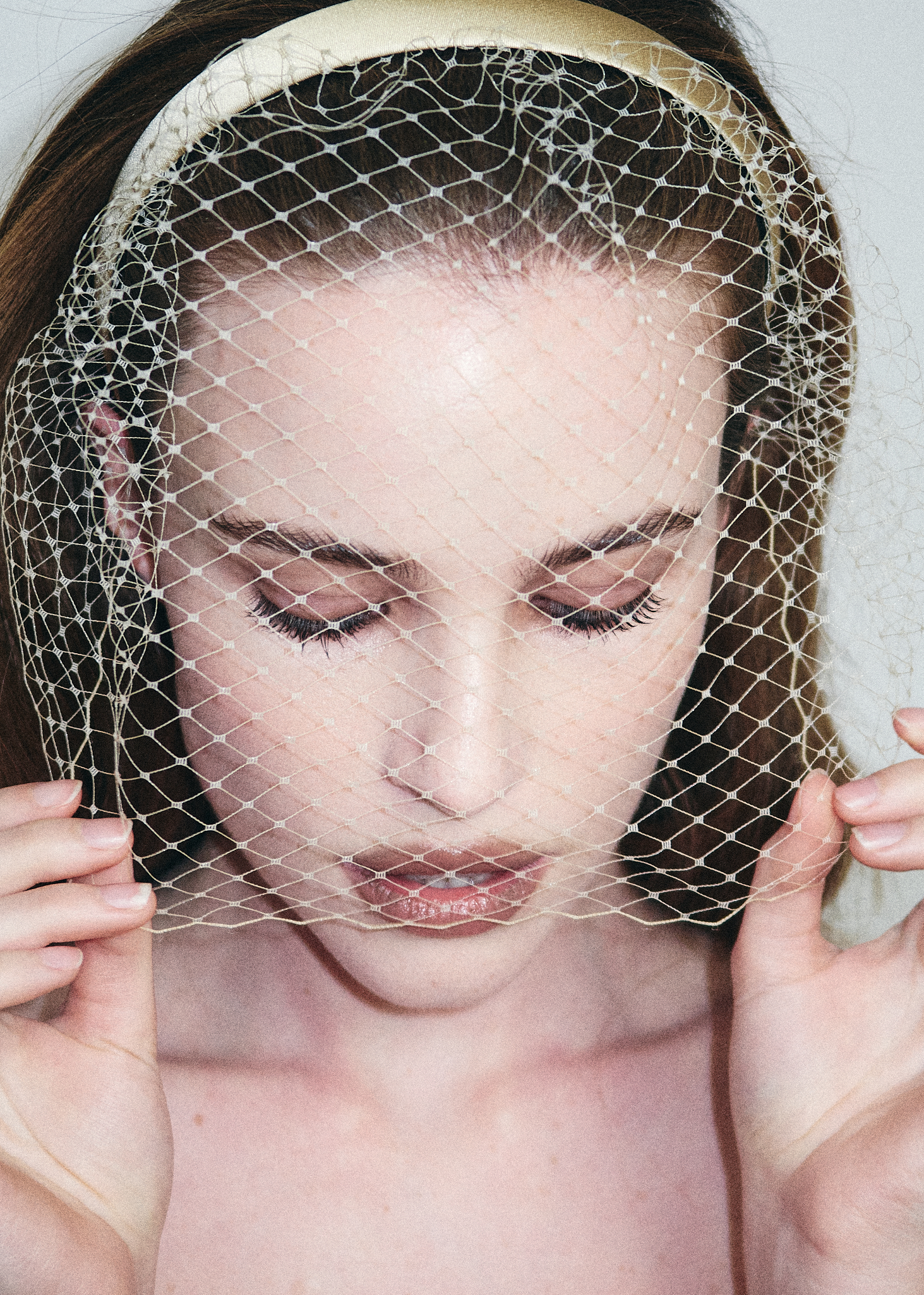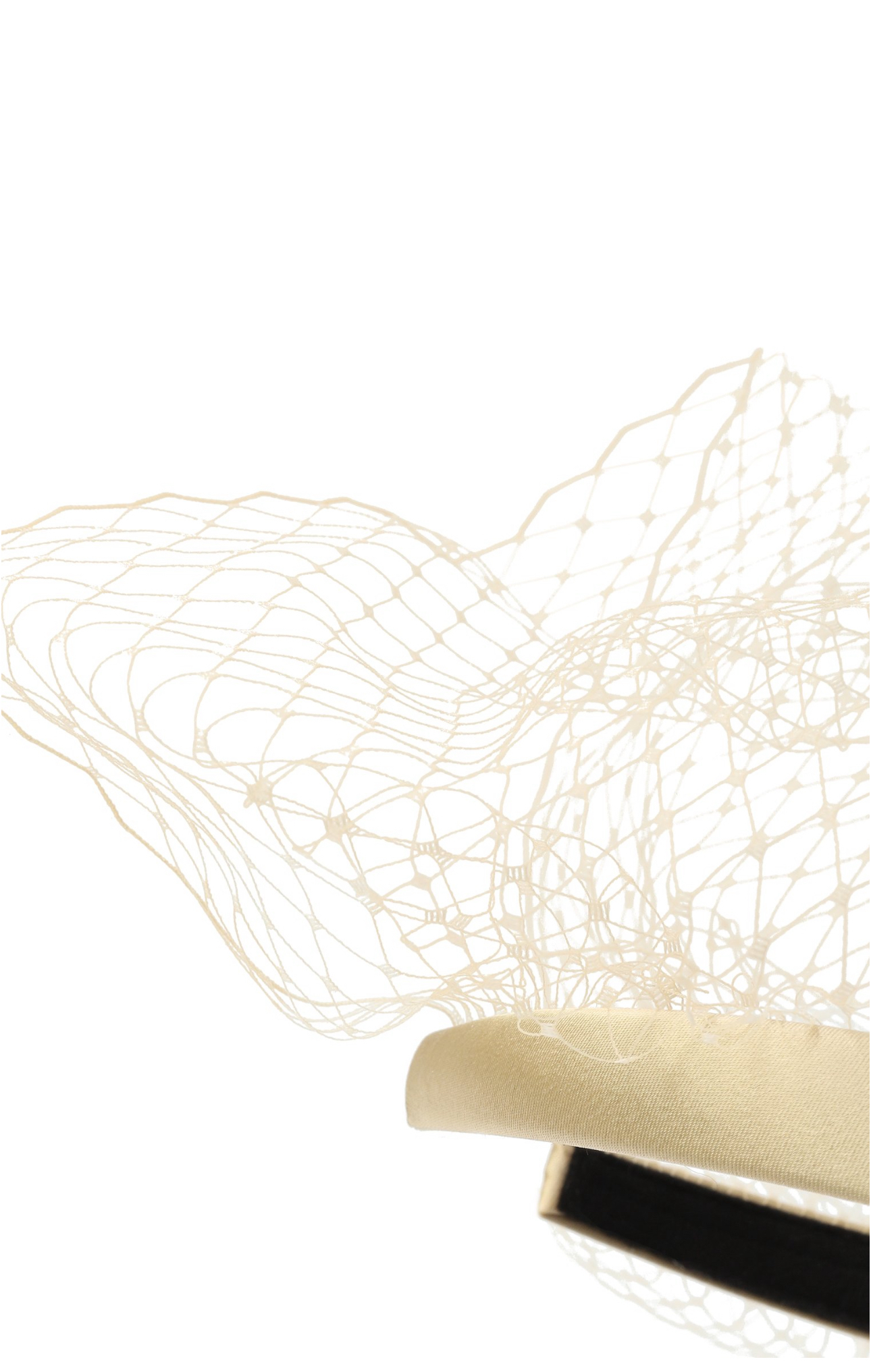 Ободок тонкий с классической вуалью в соломенном цвете.