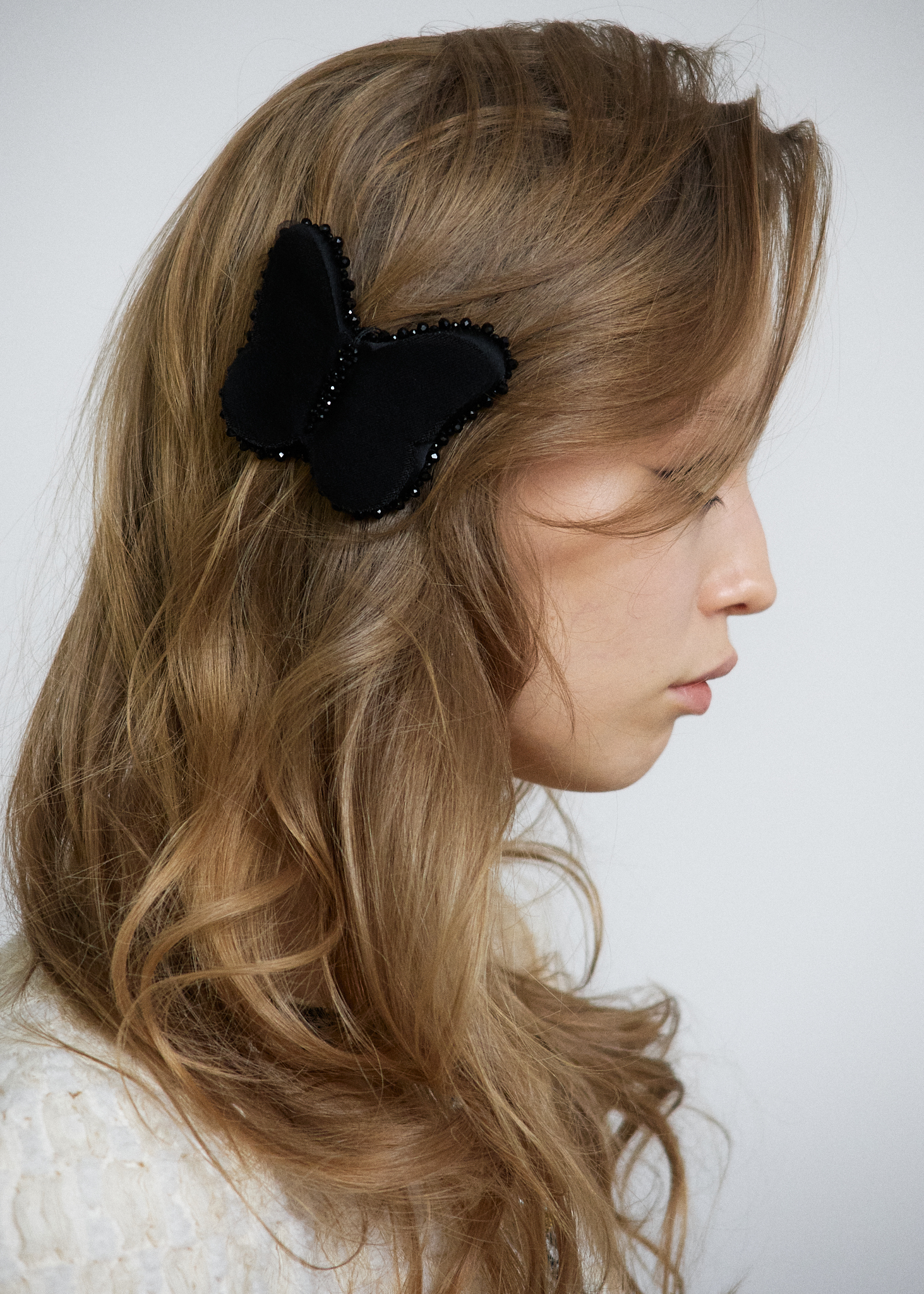 Заколка-бабочка изготавливается мастерами по авторским-техникам бренда, по краям бабочка расшита бусинами, дополнительно добавили изящные крылья, которые придают ей объем и ощущение легкого порхания.