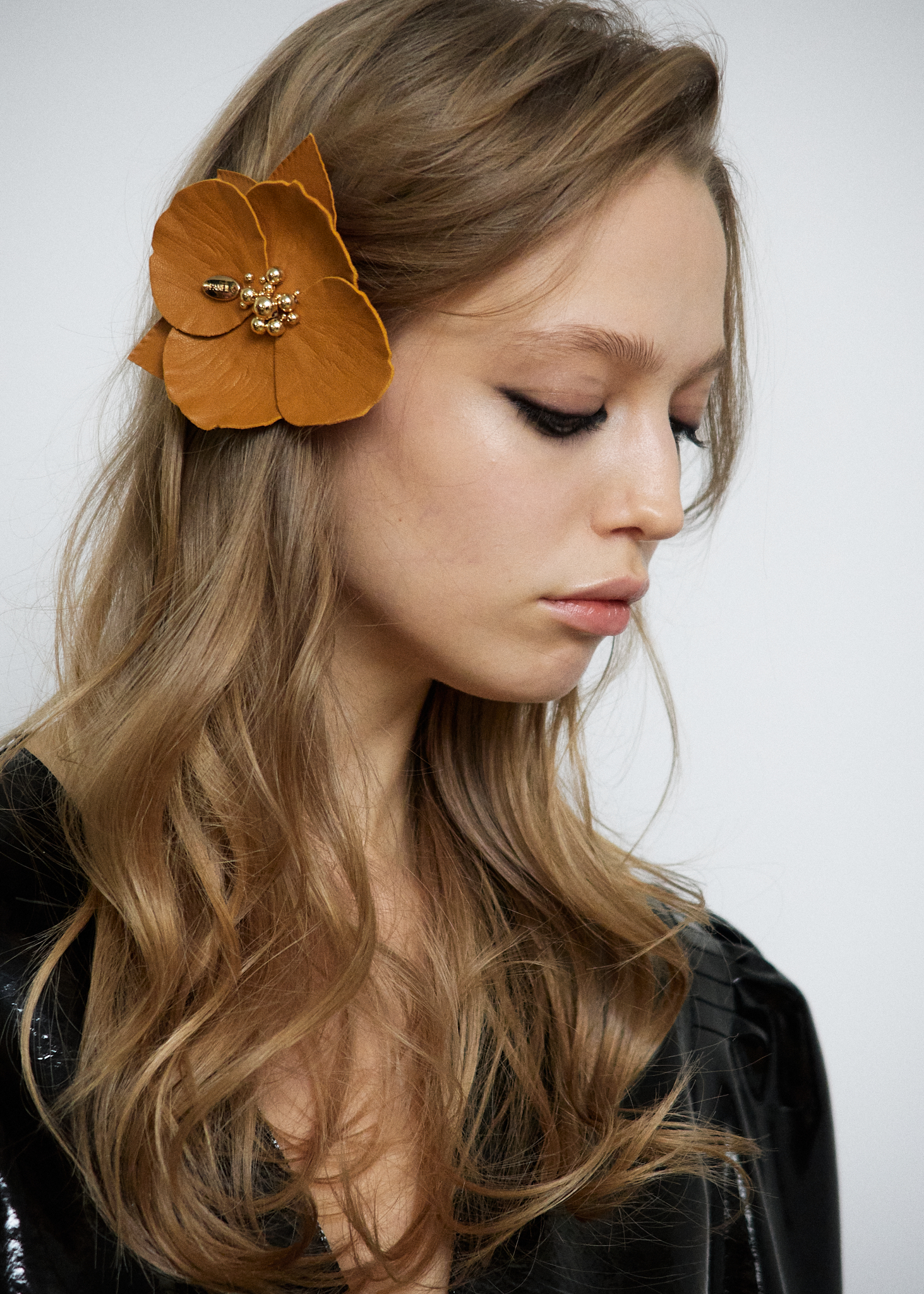 Сердцевина цветка украшена золотым декором, прекрасно дополнит повседневный образ, так и вечерний.